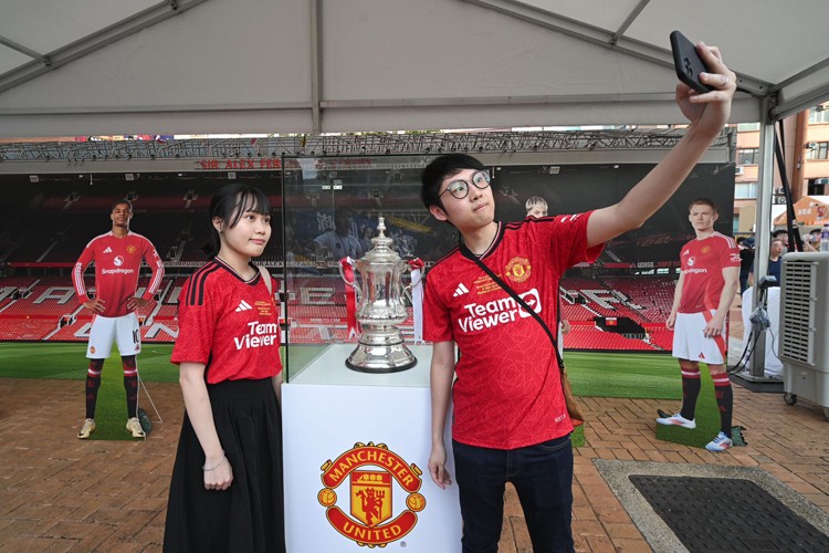 曼聯(lián)作為現(xiàn)屆英格蘭足總盃盟主,還帶同珍貴的足總盃獎盃來港展出,讓球迷在場內(nèi)打卡。