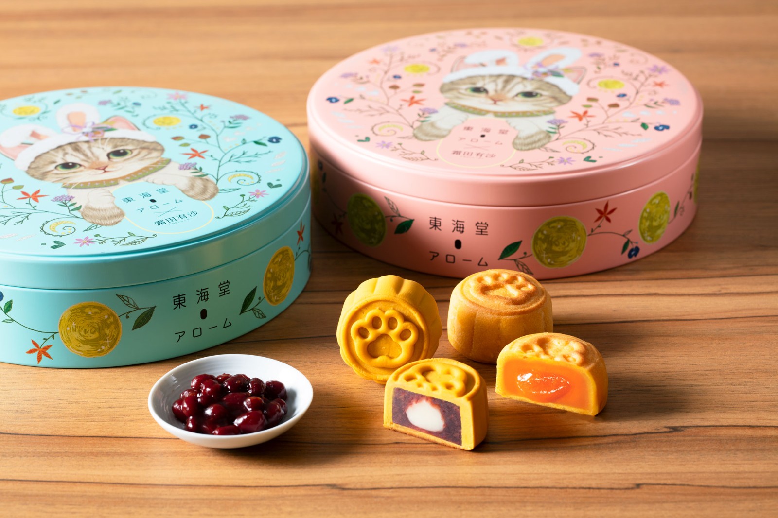 若家中有小朋友,可留意與SPY x FAMILY聯(lián)名推出的月餅禮盒。粉紅色皮紋設(shè)計的禮盒印上卡通角色安妮亞,以假亂真的書籍內(nèi)隱藏流心奶黃月餅。貓奴在賞月期間怎能缺少貓咪的陪伴?品牌今年再次邀請插畫家霜田有沙打造「喵·秋月禮盒」,禮盒備有花瓣粉色和水藍色兩色可選,餅?zāi)J强蓯鄣呢埲馇蛟煨土餍哪厅S及十勝紅豆麻糬月餅,定能俘虜貓奴的心。即日起,於分店購買任何3盒月餅, 或購買任何兩盒月餅再加HK$50,可獲印有月亮及花瓣的可愛貓貓旅行收納套裝。