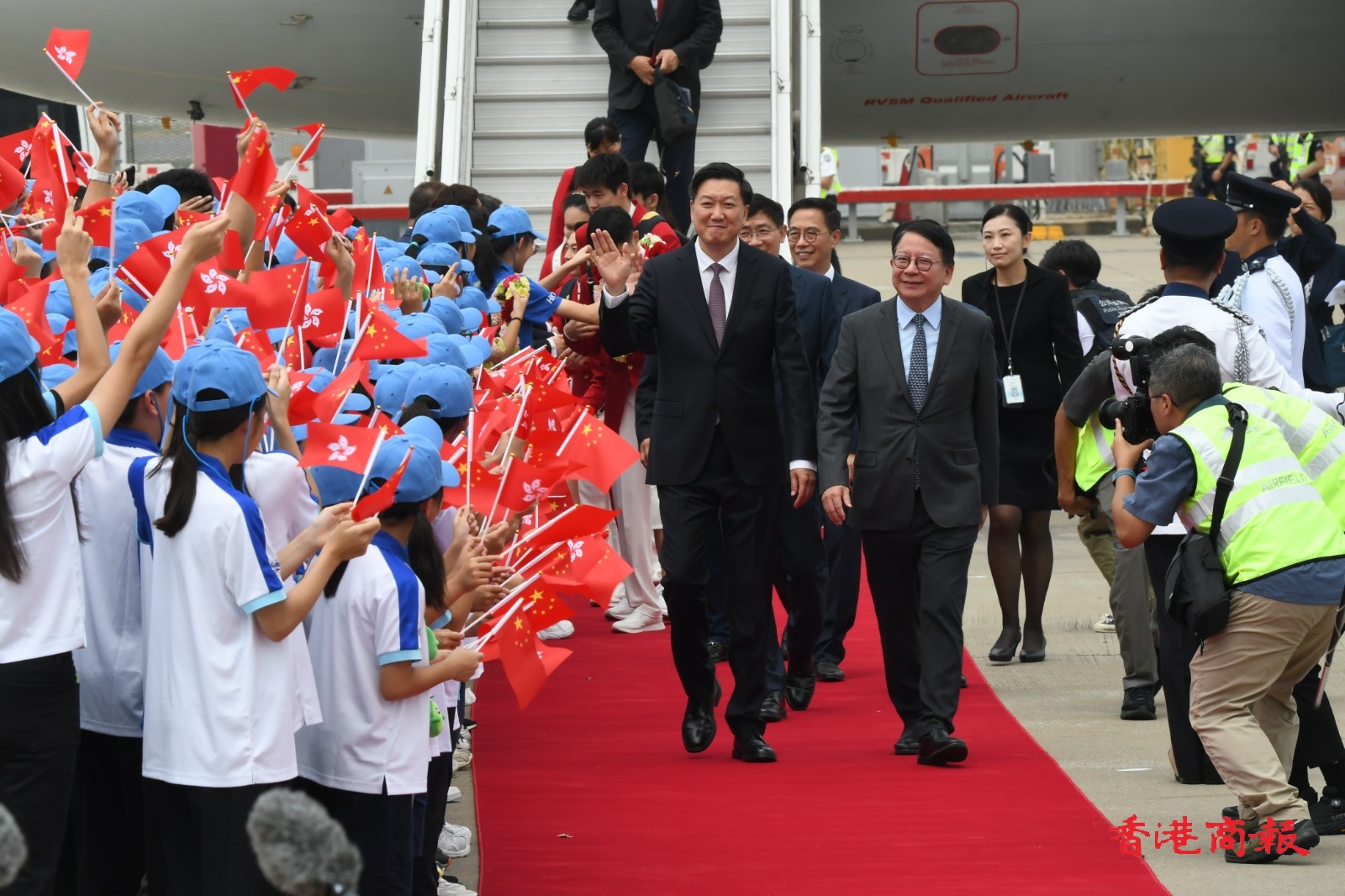 8月29日中午約12時(shí),由馬龍、全紅嬋、潘展樂等65名在巴黎奧運(yùn)會(huì)上取得佳績的運(yùn)動(dòng)員和8名教練員組成的內(nèi)地奧運(yùn)健兒代表團(tuán)抵達(dá)香港國際機(jī)場,香港各界熱烈歡迎。特區(qū)政府在停機(jī)坪舉行熱烈的歡迎儀式,表達(dá)各界對奧運(yùn)健兒的熱切期待。(記者 馮瀚文 攝)