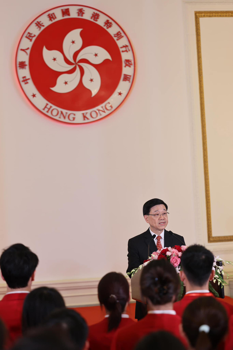 行政長官在禮賓府接待巴黎奧運會內(nèi)地奧運健兒代表團。(李家超社交媒體圖片)