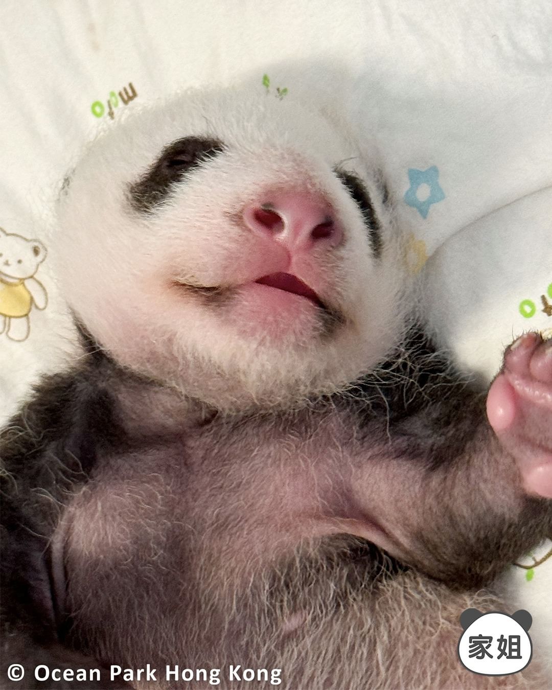 港產(chǎn)大熊貓龍鳳胎中秋月圓之前剛好滿月。海洋公園早前表示,龍鳳胎近日快高長大,姊姊體重已由出生時的122克增至910克,弟弟就由112克增至814克。