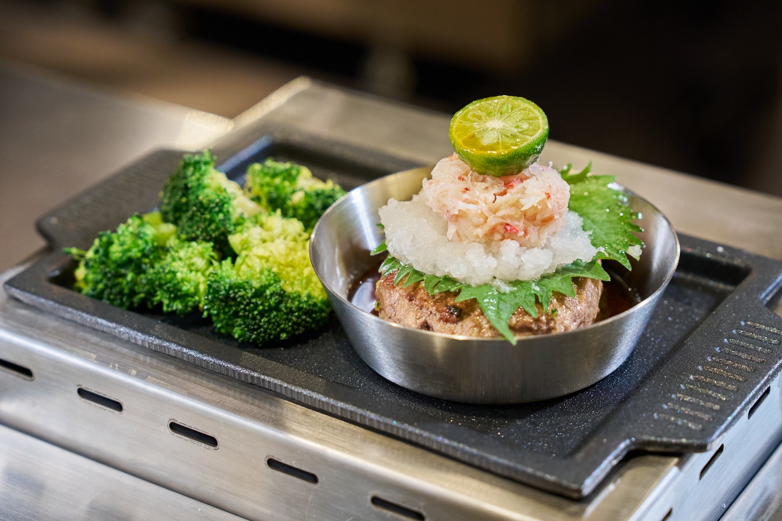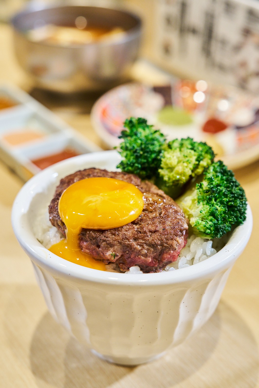 店內(nèi)提供和牛漢堡排及和牛芝士漢堡排的單人套餐,食客可按個人喜好選擇不同口味及數(shù)量的套餐,套餐最便宜HK$95包含兩個和牛漢堡排,最貴HK$140包含和牛漢堡排一個及和牛芝士漢堡排兩個,一共三個漢堡排。和牛漢堡排口味經(jīng)典,和牛芝士漢堡排採用片狀及刨絲的車打芝士,芝味濃郁,帶來奶香及鹹香的餘韻。除常規(guī)餐牌外,餐廳並有期間限定餐牌。於新開張的10月份,推出和風「和牛蟹肉漢堡排」套餐,漢堡排加入了蟹肉和蘿蔔絲並淋上柚子醋,酸甜清新的口味吃起來不會膩。所有套餐均包括可生食的日本新鮮雞蛋,漢堡排及飯上沾滿蛋液,增添細滑的口感。同時套餐內(nèi)的米飯、西蘭花、湯無限任食,男士也不用擔心吃不飽。 (記者、部分圖片:Janice)