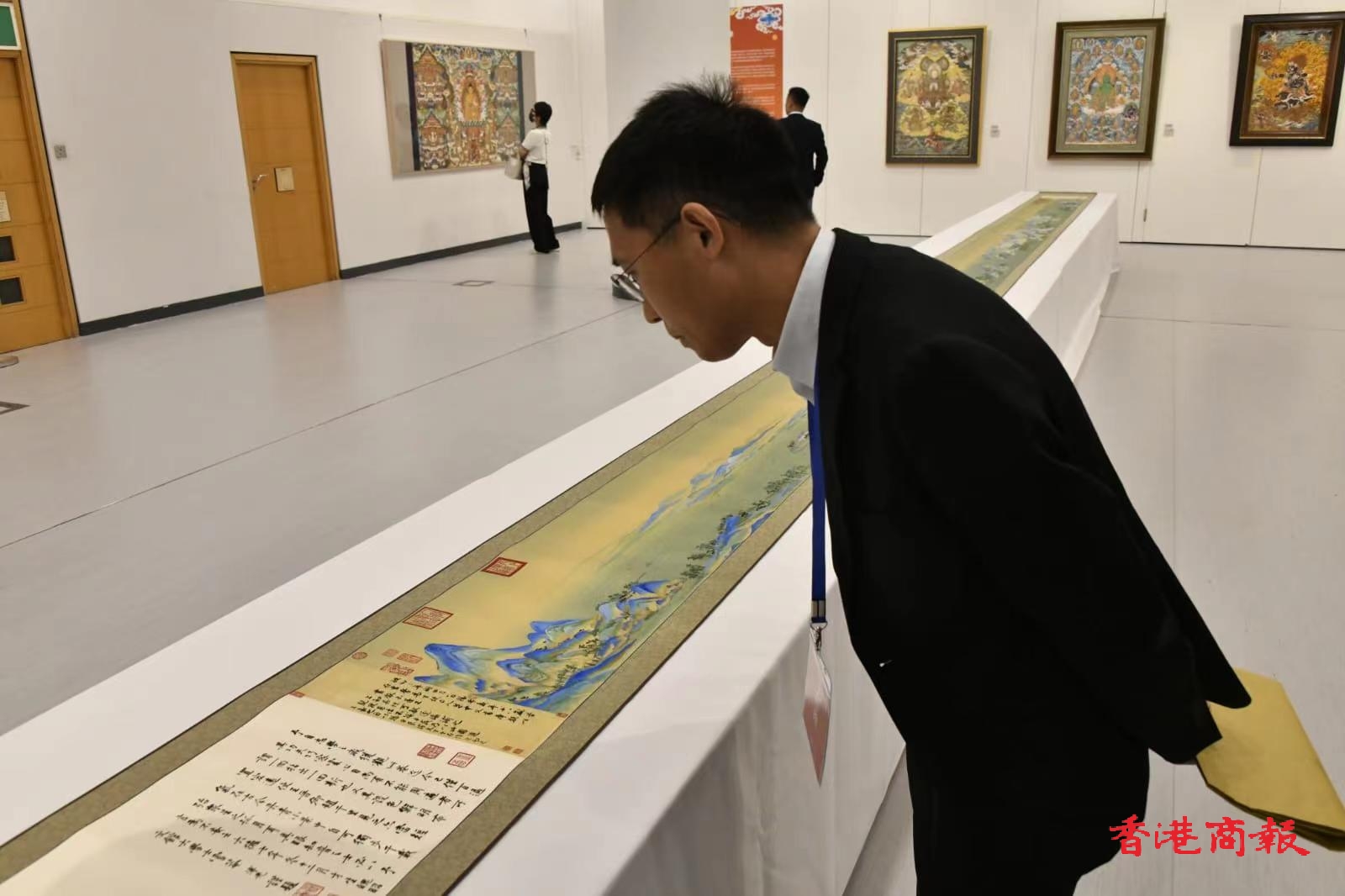 紫荊雜誌社副社長(zhǎng)袁建介紹說(shuō),本次展覽旨在貫徹落實(shí)習(xí)近平主席關(guān)於加強(qiáng)和改進(jìn)民族工作的重要思想,設(shè)置《啓—迴響》、《溯—生息》、《輝—流光》、《聚—華章》四大版塊,以文字圖片、實(shí)物陳列、文藝表演等生動(dòng)鮮活的形式,全面呈現(xiàn)富含深厚文化底蘊(yùn)的非遺民俗、服裝服飾、繪畫藝術(shù)等優(yōu)秀文化精品,其中有青年人喜愛(ài)的插畫藝術(shù)和56個(gè)民族簡(jiǎn)介的照片牆、56個(gè)民族服飾,以及涵蓋勉唐畫派、噶瑪噶赤畫派、齊烏崗巴畫派和尼泊爾畫派的40多幅唐卡。這些豐富的展覽內(nèi)容,展現(xiàn)了各民族文化各美其美、美美與共,讓廣大香港市民近距離感受中華民族文化的博大精深和現(xiàn)代創(chuàng)新,深刻領(lǐng)會(huì)中華民族的氣度與神韻,親身感悟「各民族像石榴籽一樣緊緊擁抱在一起」的親近情思和偉大力量。