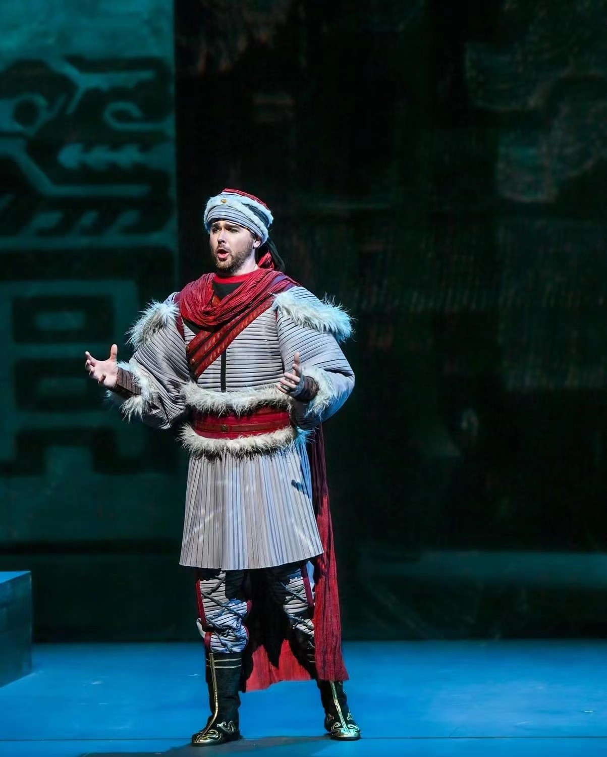 這中國(guó)韻味,不只是裝飾,結(jié)構(gòu)鋪排有序,劇情發(fā)展絲絲入扣。前來(lái)應(yīng)試做駙馬的男子要回答三個(gè)問(wèn)題,第一幕殘忍,猜不中謎語(yǔ)的就要被砍頭。第二幕要麼一個(gè)婚禮,要麼一個(gè)葬禮,令當(dāng)官的也思量再三。第三幕贏得愛(ài)情的勝利要用命搏。飾演卡拉富的男主角、來(lái)自俄羅斯的吉格佐夫唱出「今夜無(wú)人入睡」時(shí),把歌劇推向了高潮,他的氣息控制極佳,聲音平穩(wěn)高昂而不誇張,當(dāng)他弱唱「我願(yuàn)一死時(shí)」,整個(gè)音樂(lè)廳似乎只有他弱但有力的唱音,讓聽(tīng)者入戲。