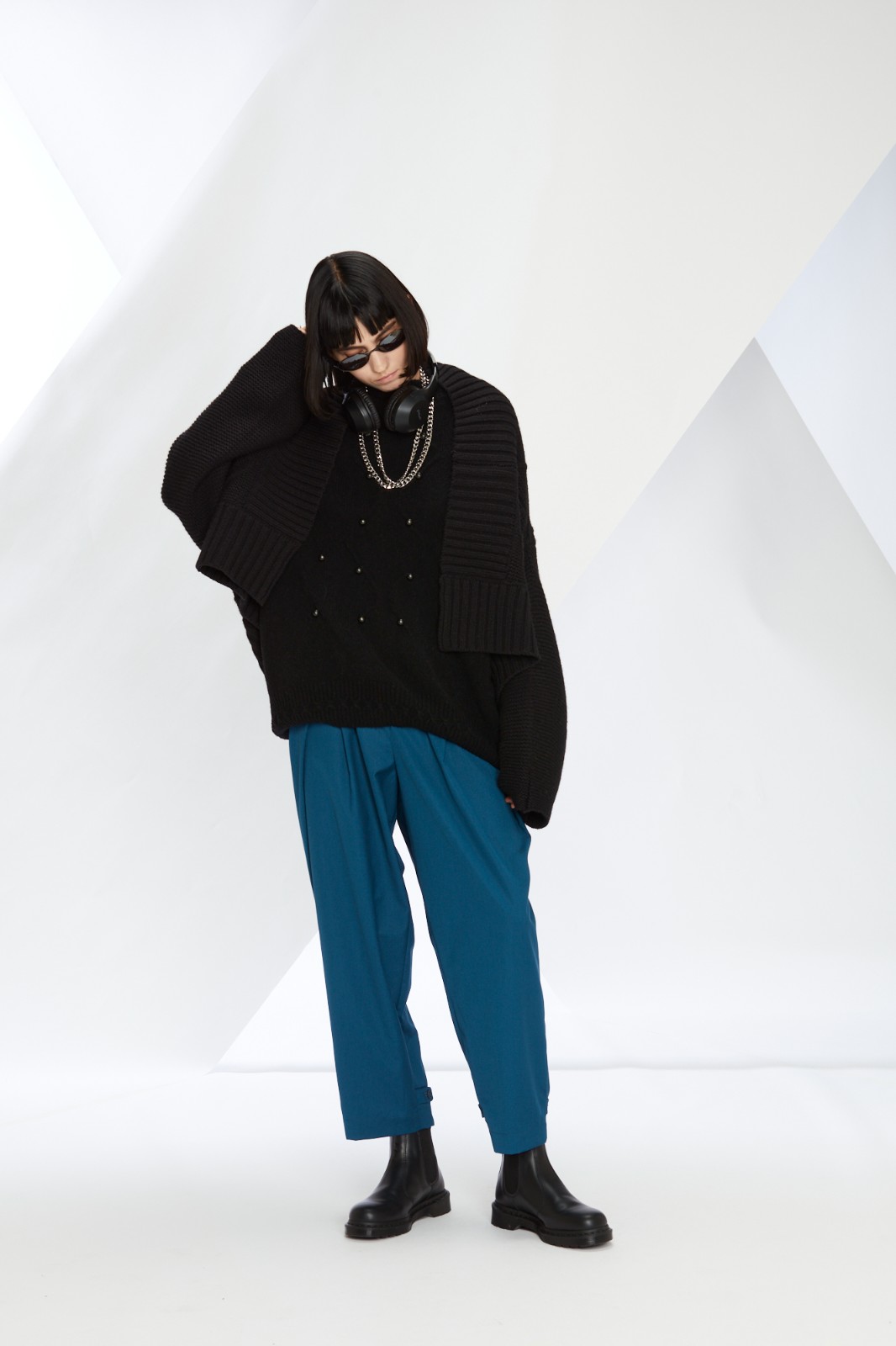 軟性前衛(wèi)風格(Soft Avant Garde)是品牌的特色,具備超前的元素,設計卻又輕柔易駕馭,今季以予人乾淨、整潔、簡約又百搭的大地色系單品展現(xiàn)。TAYAMA擅長設計百搭又充滿前衛(wèi)感的針織衫,今季以「茄士咩」羊絨、混羊絨等面料混合紗線技術,並用不同顏色和粗細的染色紗線交織成色塊效果,不僅增添了質感,同時兼具混合紗線的柔軟。粗針織毛衣設計亦充斥各種破格元素,包括超大立體菱形格紋、超大的口袋、不對稱設計等,加上強烈又百變的顏色,與多種細節(jié)巧妙融合,如雅典娜面料不同素材拼接和鏤空蕾絲等,散發(fā)率性與浪漫感。