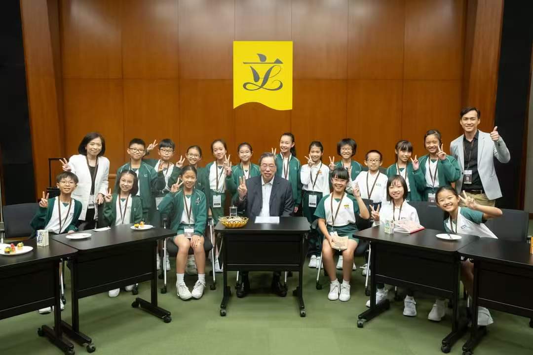 立法會(huì)主席梁君彥為2024/25學(xué)年「與立法會(huì)議員暢談」計(jì)劃揭開序幕,並親自接待17名來自九龍?zhí)翆W(xué)校(小學(xué)部)的小五和小六學(xué)生。圖:梁君彥fb
