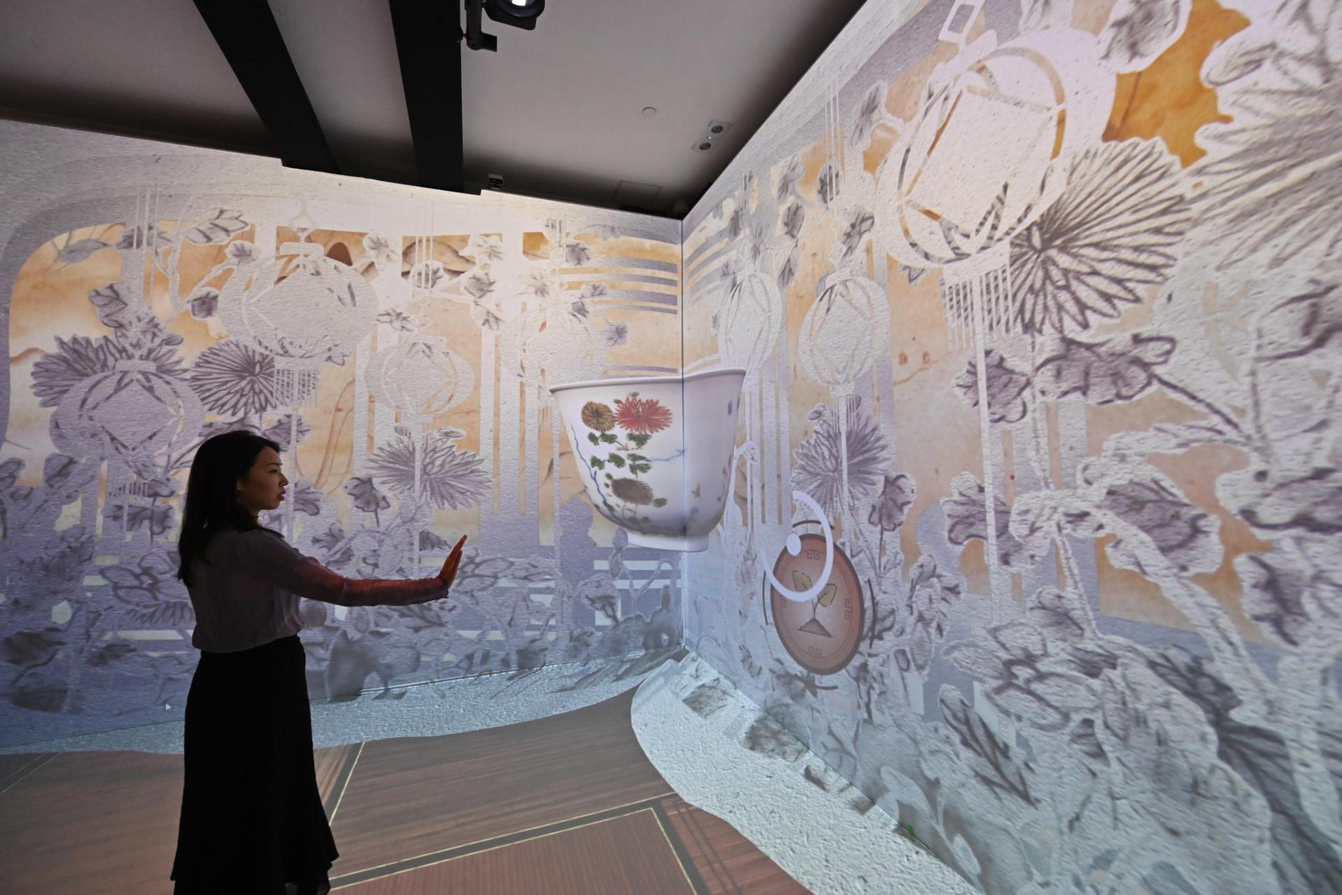 茶具文物館同時邀請藝術家團隊DBIS,將館藏的五彩十二花神杯融入互動裝置《四時庭園》中,透過藝術與科技結合,觀眾可與花神杯互動,配合自身的肢體動作引導花神生長,孕育一個充滿活力的虛擬花園。