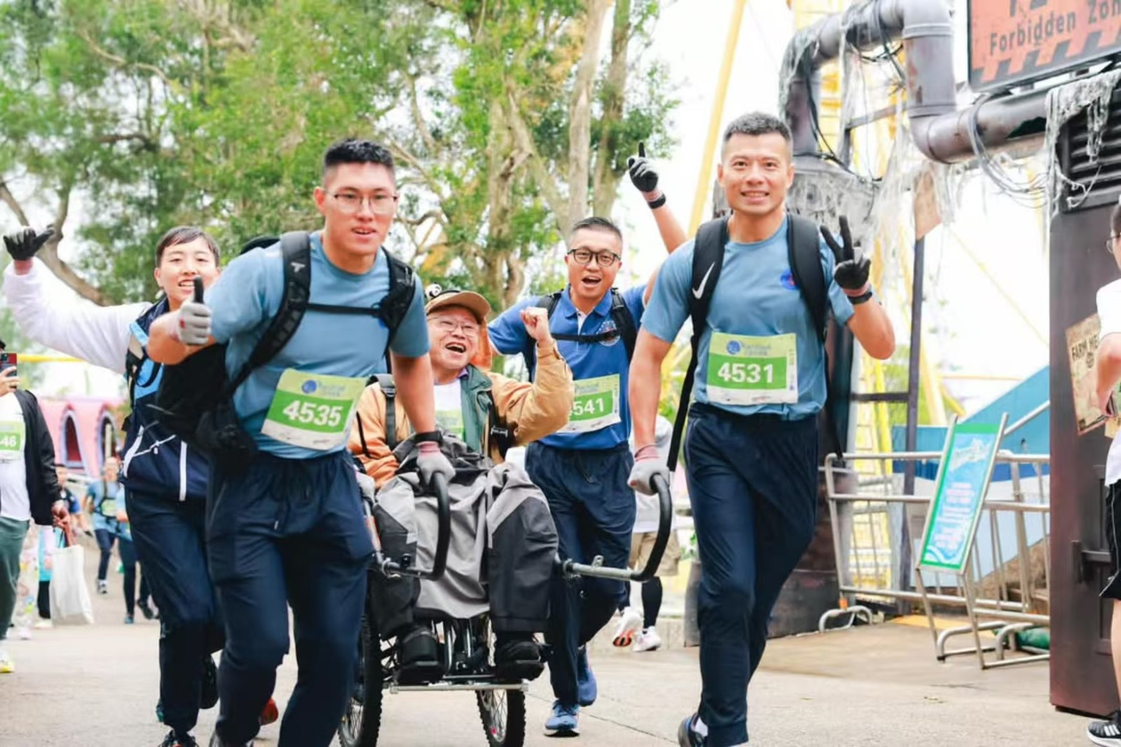 超過(guò)200名香港警察學(xué)院基礎(chǔ)訓(xùn)練學(xué)校見(jiàn)習(xí)督察和學(xué)警聯(lián)同一眾「極地同行」代表,在今次慈善跑擔(dān)任義工,無(wú)懼風(fēng)雨利用越野人力車(chē)和傷健人士組隊(duì),一同參加慈善跑,實(shí)踐並宣傳傷健共融。(記者區(qū)天海)