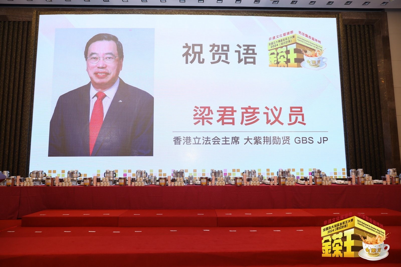 香港立法會主席梁君彥為大賽錄製了視頻,他表示港式奶茶作為香港非物質(zhì)文化遺產(chǎn),深受內(nèi)地遊客喜愛,為香港餐飲業(yè)帶來經(jīng)濟(jì)效益。立法會議員積極助力各行業(yè)應(yīng)對挑戰(zhàn),餐飲業(yè)需多元化發(fā)展,融入大灣區(qū)市場。並表示金茶王大賽 15 周年於廣州舉行,對推廣香港非遺文化意義重大。