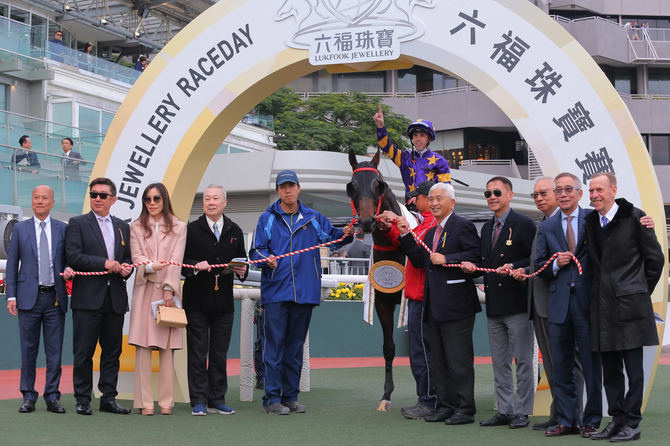 今日(15日)沙田馬場舉行六福珠寶杯賽馬日,第七場二班1000米上演六福珠寶杯,蔡約翰訓(xùn)練、榮智健名下愛駒「星際快車」,在艾道拿胯下以一放到底姿態(tài),順利帶返終點(diǎn),打開在港勝門,榮智健開心拉頭馬之餘,兼且贏得錦標(biāo),認(rèn)真威水。「我為您」、「占士德」分跑第二、第三名,而賽前捧成13元大熱的「舉步生風(fēng)」只得梗頸四,捧場客輸光了!(文、圖、片:志誠)