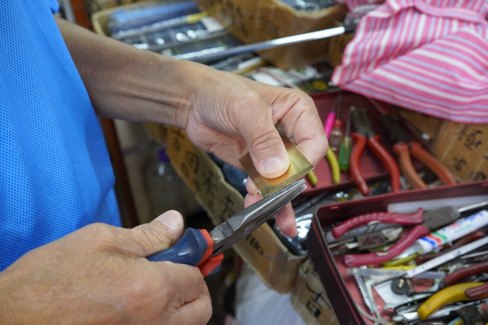 威哥的維修工具幾把螺絲批及鉗,部分造型特別的鉗是傘廠獨有。