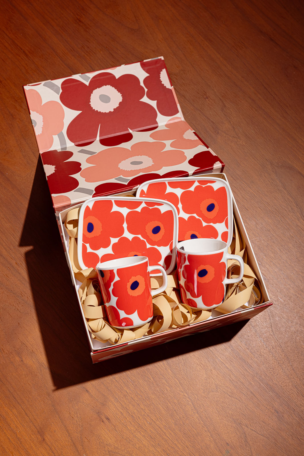 玩味十足的印花家品能令提升家居的佳節(jié)氛圍,Marimekko今年推出節(jié)日限定禮盒套裝,外包裝以紅色的標誌性UNIKKO印花為主題,內(nèi)有一對印花馬克杯和碟子套裝,並設(shè)6款UNIKKO印花及1款KUUSIKOSSA聖誕樹印花可供選擇,隨盒限量附送印花玻璃飲管套裝,助布置充滿節(jié)日感的餐桌擺設(shè)。