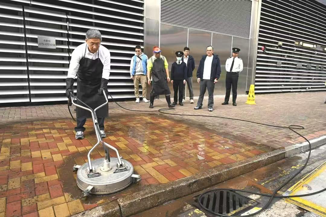 政務(wù)司副司長(zhǎng)卓永興日前走訪港九新界多處地方,視察食環(huán)署使用高速清洗盤清洗街道的工作,指欣喜有關(guān)街道經(jīng)改善衛(wèi)生2年多後,仍能得以保持清潔。他要求食環(huán)署用心做好街道清潔,讓市民開開心心的過(guò)新年。