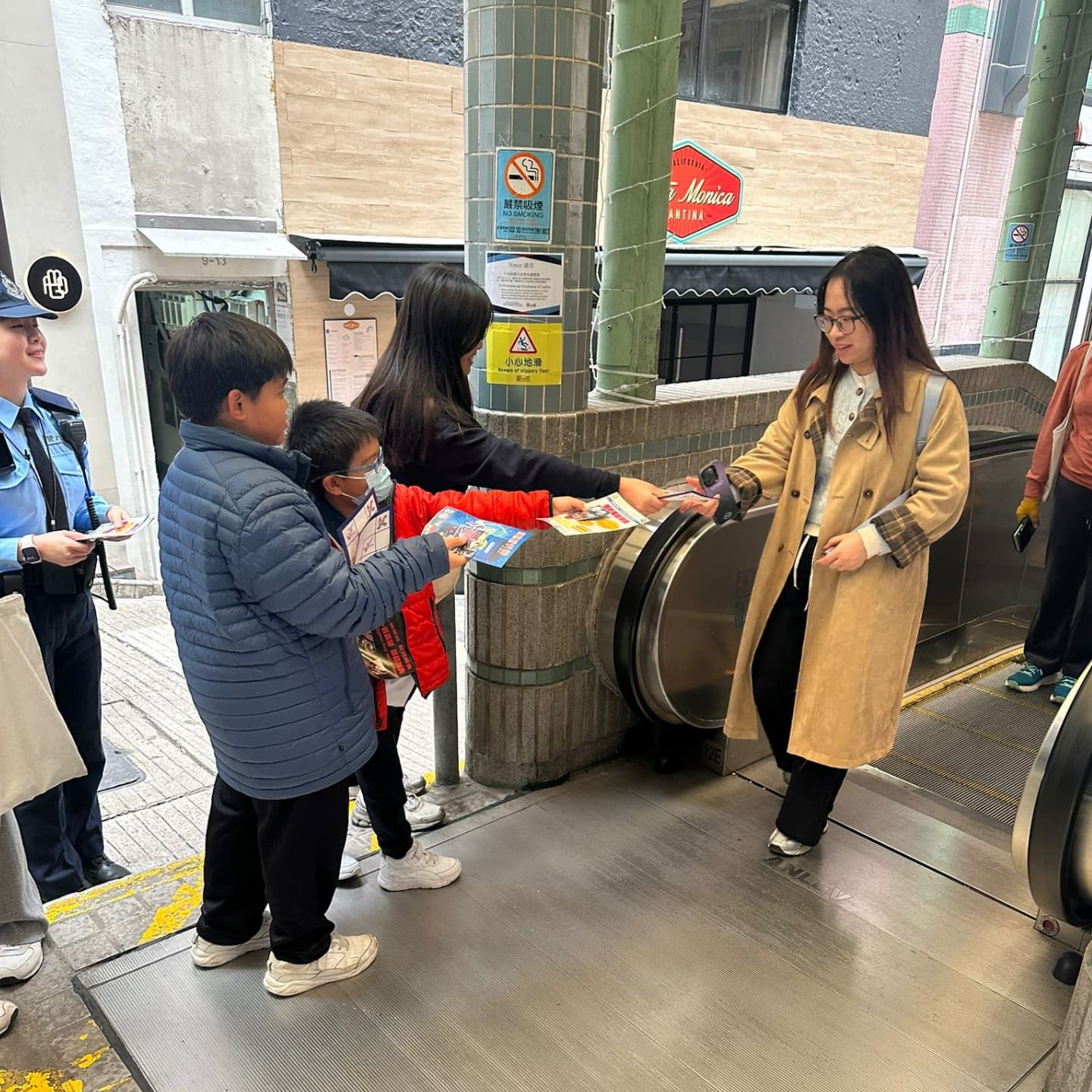 中區(qū)警區(qū)軍裝部人員聯(lián)同少年警訊會員昨日(1日)前往中環(huán)蘇豪區(qū)一帶進(jìn)行防騙防罪宣傳。防騙防罪隊(duì)伍由大館出發(fā),經(jīng)史丹頓街蘇豪區(qū)、鴨巴甸街再折返大館,沿途向遊客及市民派發(fā)防騙防罪傳單及宣傳品,除提醒他們保管財(cái)物外,亦提供防騙訊息。