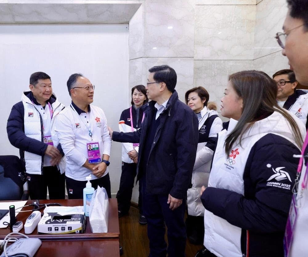 今日(8日)是哈爾濱亞冬會開幕後的首個比賽日,行政長官李家超早上前往冰上項目運(yùn)動員村與港隊運(yùn)動員、領(lǐng)隊、教練、醫(yī)療隊伍代表會面交流。他今午於社交平臺發(fā)文表示,港隊派出了破紀(jì)錄的逾70名運(yùn)動員參賽,很開心看到運(yùn)動員身心狀態(tài)都很好。並鼓勵他們放鬆心情、發(fā)揮最佳水平。