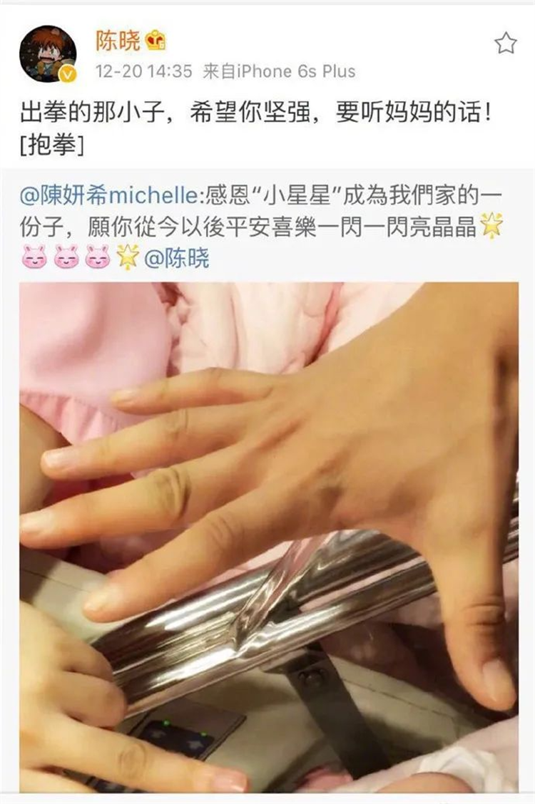 2016年7月5日,陳曉和陳妍希在合肥領(lǐng)證;7月19日在北京舉行婚禮;同年12月20日,陳曉和陳妍希的兒子「小星星」出生。