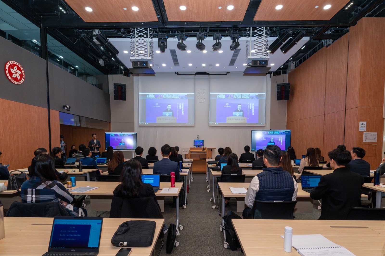 林定國感謝中央港澳辦八局局長楊曉山,以及清華大學繼續(xù)教育學院黨委書記趙雨東一直對本課程的大力支持,也感謝清華大學負責主講本期課程的各位星級講師,包括王振民博士、余凌雲(yún)博士、張建偉博士、聶鑫博士、汪洋博士、畢雁英博士、靳衞萍博士和張建平博士。他期望學員們把握機會,好好學習。