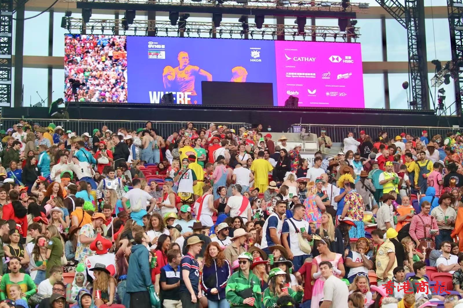 在啟德主場館舉行的「國泰/滙豐香港國際七人欖球賽」(香港七欖)今日(29日)進(jìn)入次日賽事。儘管天氣明顯轉(zhuǎn)冷,依然無損球迷熱情,大家繼續(xù)狂歡。球迷見到攝記舉起相機(jī),可謂有求必應(yīng),立即作出手勢示好拍照。而在最受球迷歡迎的南看臺(tái),賽會(huì)於下午實(shí)施人流管制,球迷須要長時(shí)間輪候,才能進(jìn)入南看臺(tái)睇波。(文、圖、片:志誠)