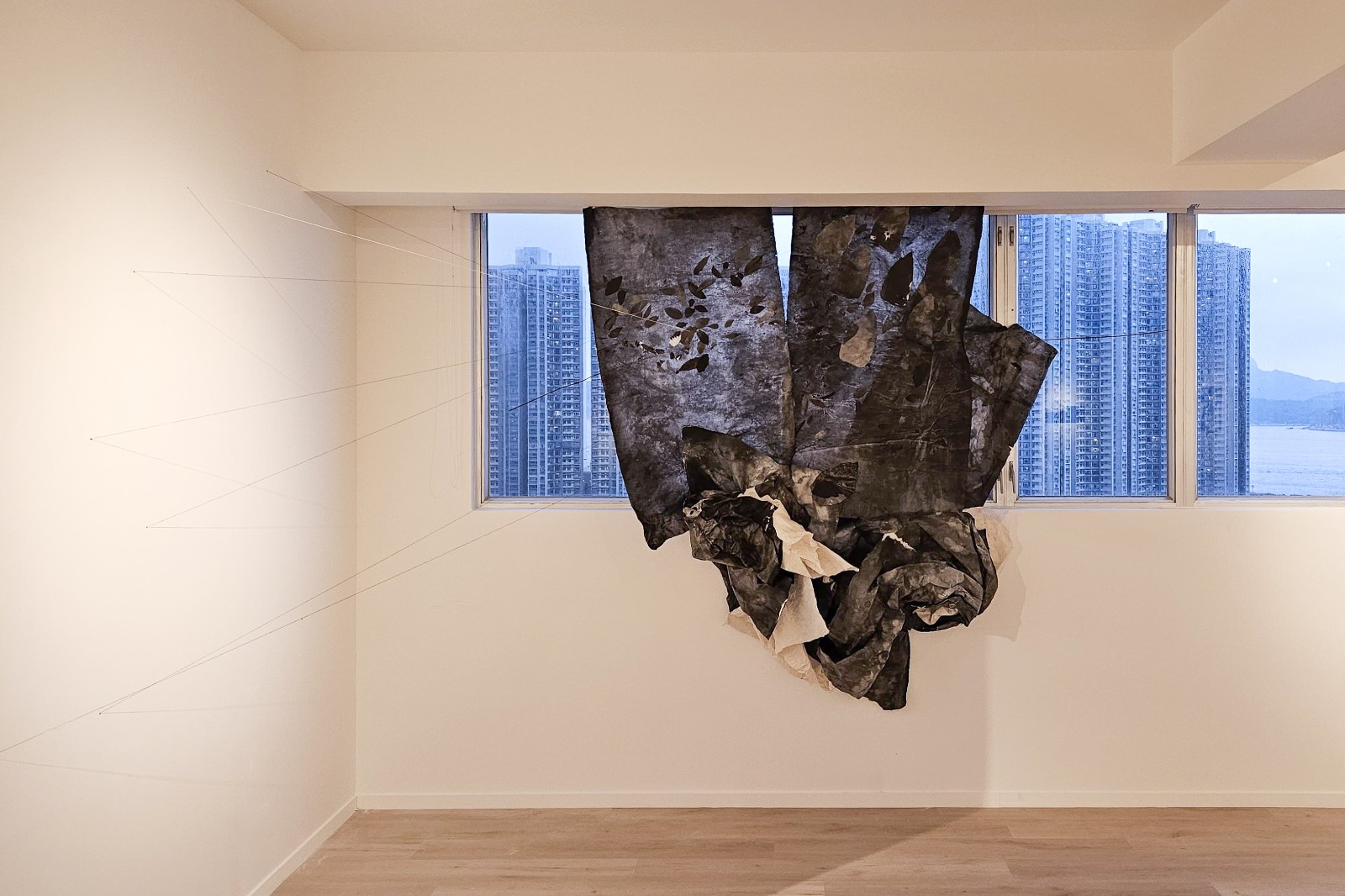 展覽的焦點(diǎn)之一是林延的「希望重生」系列中的第六件作品——《開(kāi)陽(yáng)》(Mizar)。該系列以北斗七星為靈感,通過(guò)場(chǎng)域特定的裝置,探討宇宙、自然與人類(lèi)的關(guān)係?!堕_(kāi)陽(yáng)」以手工紙為媒材,專(zhuān)為藝倡沙龍的空間而設(shè)計(jì),作品與展示環(huán)境相融合,呈現(xiàn)物質(zhì)與空間之間的對(duì)話,引導(dǎo)觀眾思考自然與生命的脆弱與永續(xù)。