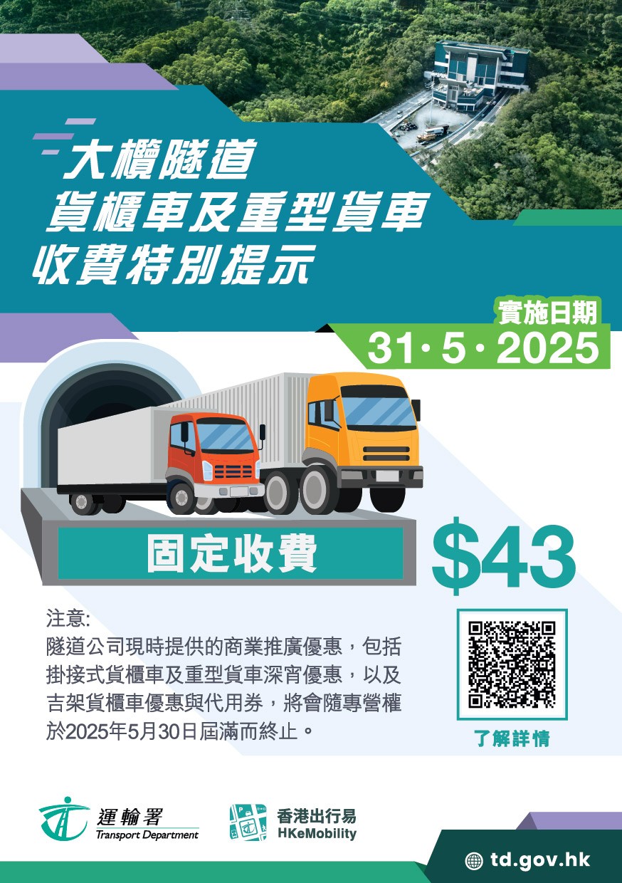 運(yùn)輸署提醒駕駛?cè)耸?,如未申?qǐng)「易通行」車輛貼和戶口,應(yīng)盡快申請(qǐng)。駕駛?cè)耸啃枇粢?,現(xiàn)時(shí)專營權(quán)公司的所有隧道費(fèi)代用券、優(yōu)惠和贈(zèng)券等於5月30日專營權(quán)屆滿後終止使用。另外,傷殘駕駛者於31日0時(shí)0分至凌晨3時(shí)期間,須暫時(shí)向收費(fèi)員展示運(yùn)輸署發(fā)出的信件以獲豁免隧道費(fèi);實(shí)施「易通行」後,系統(tǒng)則會(huì)自動(dòng)識(shí)別他們的身份。