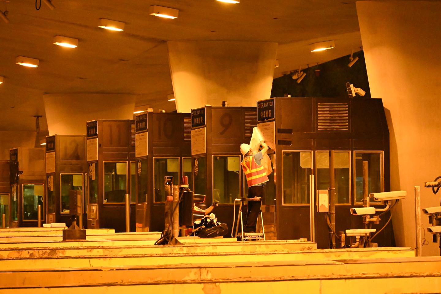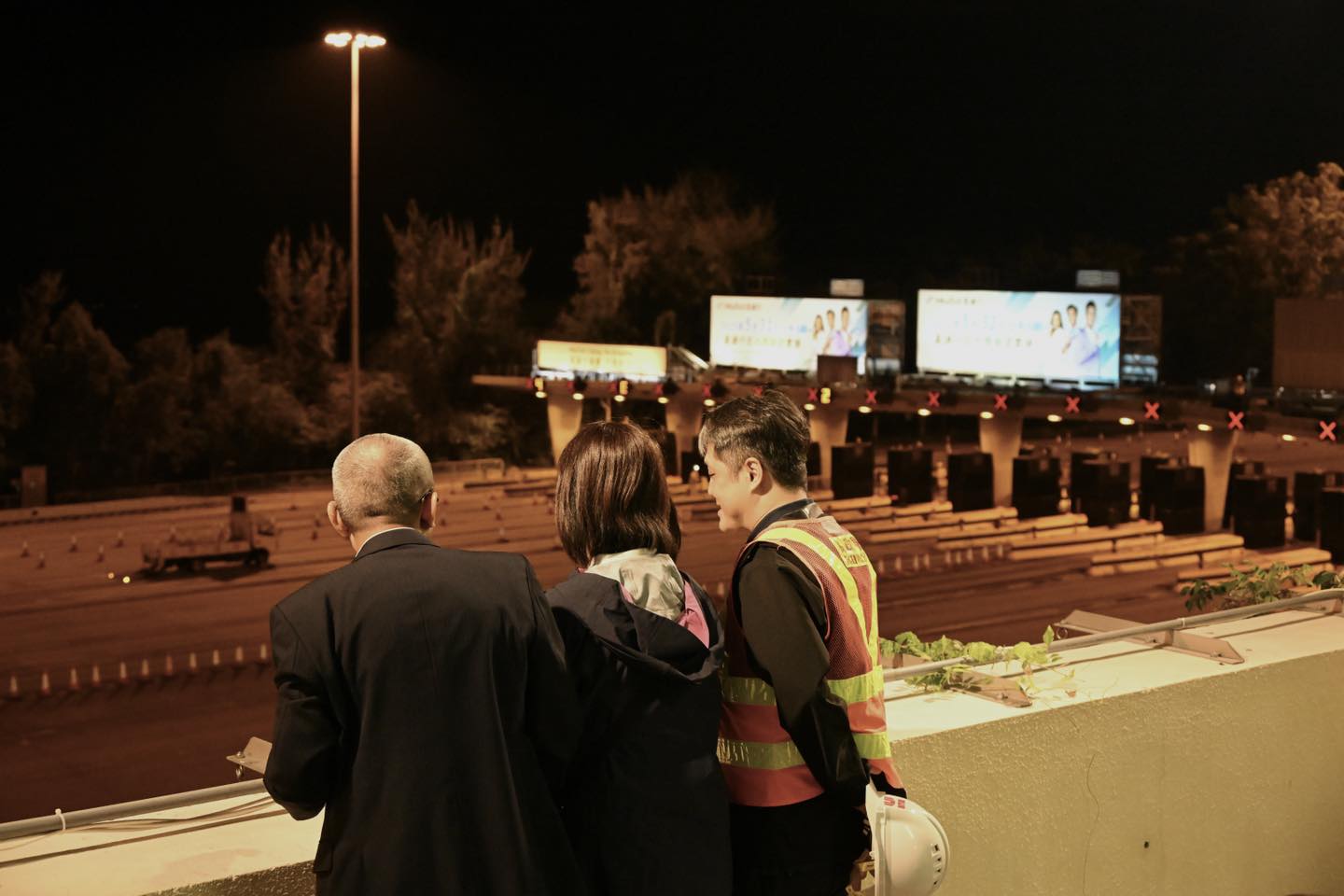 為確保大欖隧道實(shí)施「易通行」順利,運(yùn)輸署署長李頌恩今日凌晨到隧道行政大樓視察,聽取營辦商管理層匯報(bào)隧道全線封閉期間的轉(zhuǎn)換工程,並到控制中心監(jiān)察實(shí)施易通行前的準(zhǔn)備工作。