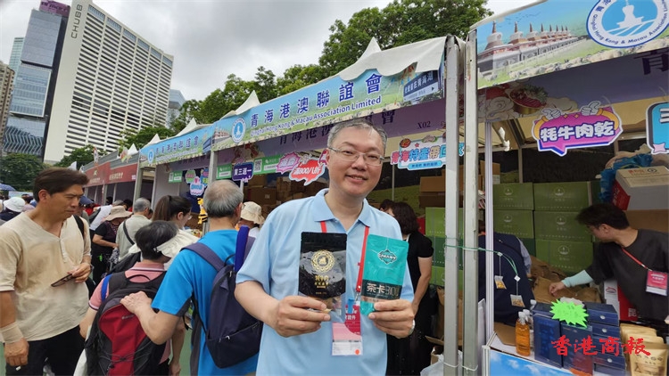 青海港澳聯(lián)誼會也有擺檔,會長吳漢忠表示,產(chǎn)品以接近成本價售賣,不是以盈利為目的,包括100元3包氂牛肉、20元4包青海湖鹽等,市民可以免費試食氂牛肉,他說氂牛肉含有的營養(yǎng)價值比普通牛肉為高,市民能夠嘗試到青海高原特色食物,希望「佢哋買得開心,食得放心」。
