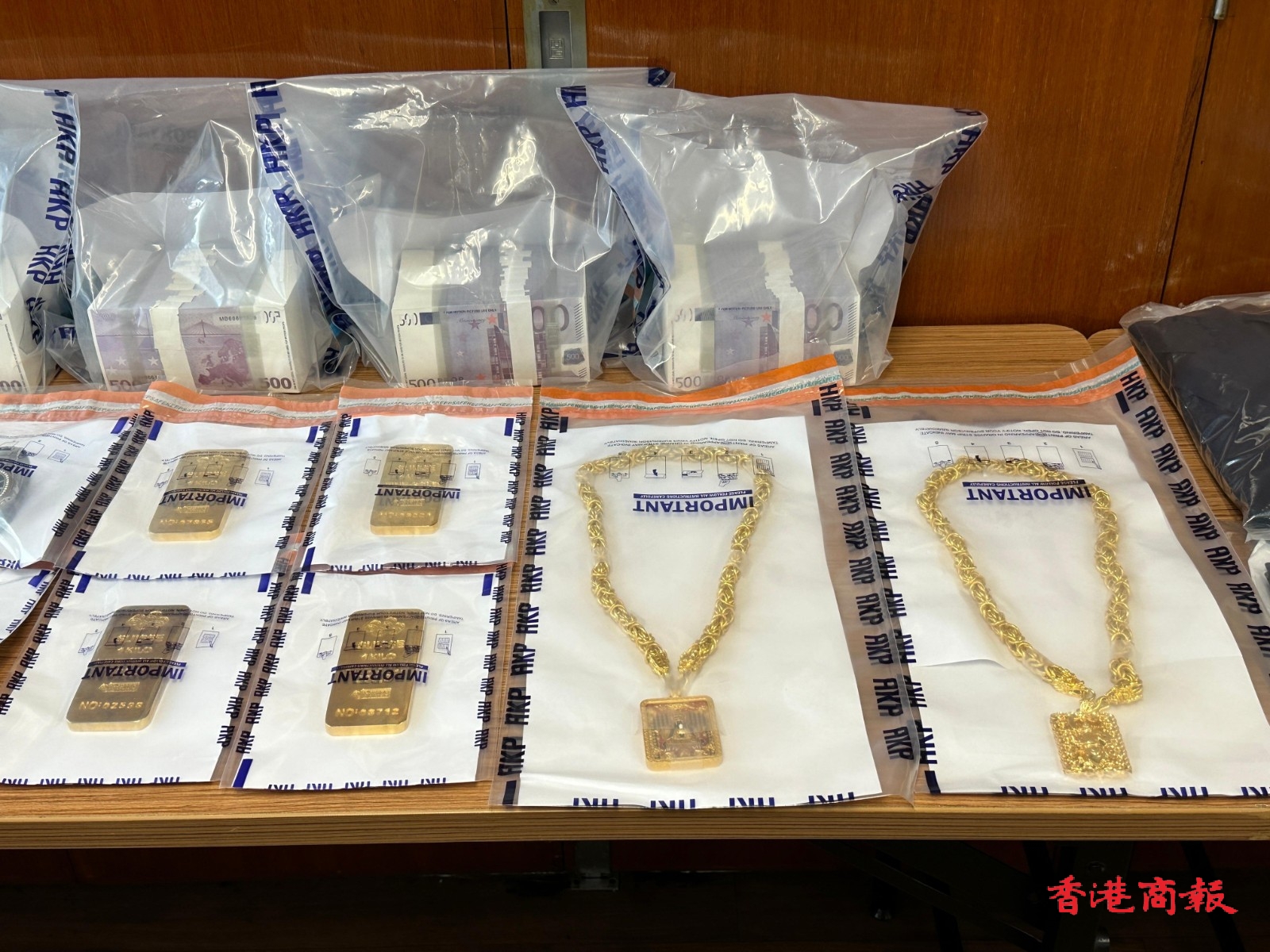 經(jīng)連日追查,探員前日持法庭手令突擊搜查紅磡一酒店房間,將涉案男子拘捕,在房內尋回騙徒犯案時穿著的衣服,另外5本假外國護照、5疊面值500歐元的道具偽鈔、一批假金飾、金條和名表,一頂香港紀律部隊的帽子和3部手機。被捕男子涉嫌「冒警」、「假冒公職人員」、「以欺騙手段取得財產」、「管有偽鈔」及「管有虛假文書」,明日(6日)於九龍城裁判法院提堂。