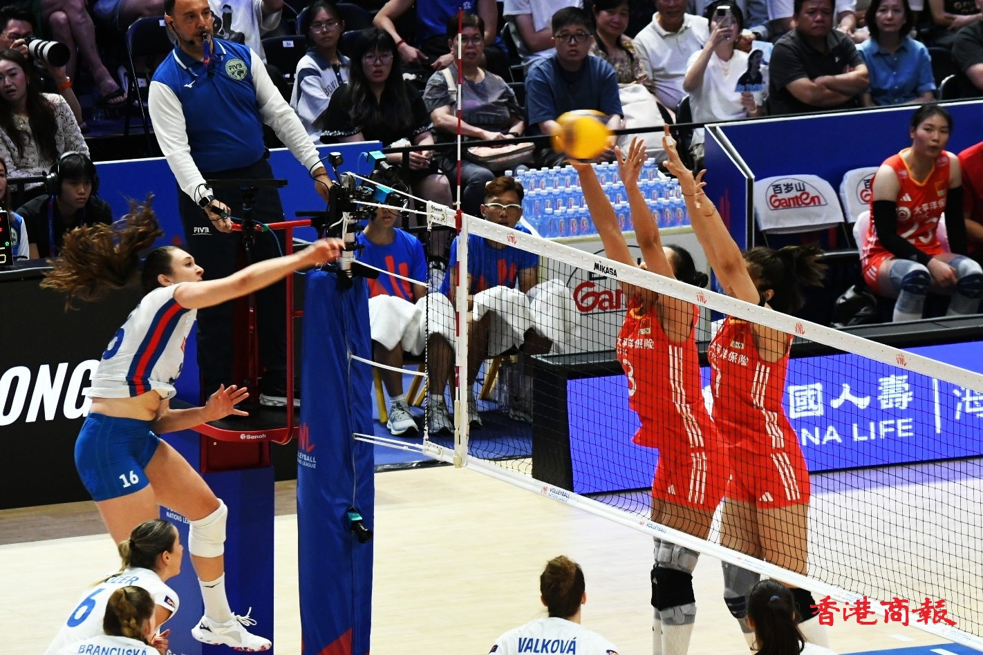 2025世界女排聯(lián)賽香港站今日(18日)在啟德體育園體藝館舉行,晚上中國女排對戰(zhàn)捷克女排,以3-1(29-27、23-25、25-15、25-22)戰(zhàn)勝對手,收獲本站開門紅?。ㄓ浾?馮瀚文攝)