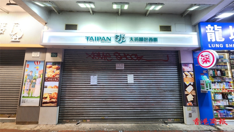 位於亞皆老街的大班麵包西餅旺角分店經(jīng)已停業(yè),鐵閘貼上停業(yè)通告,有路過市民停下圍觀。(記者何家驊 攝)