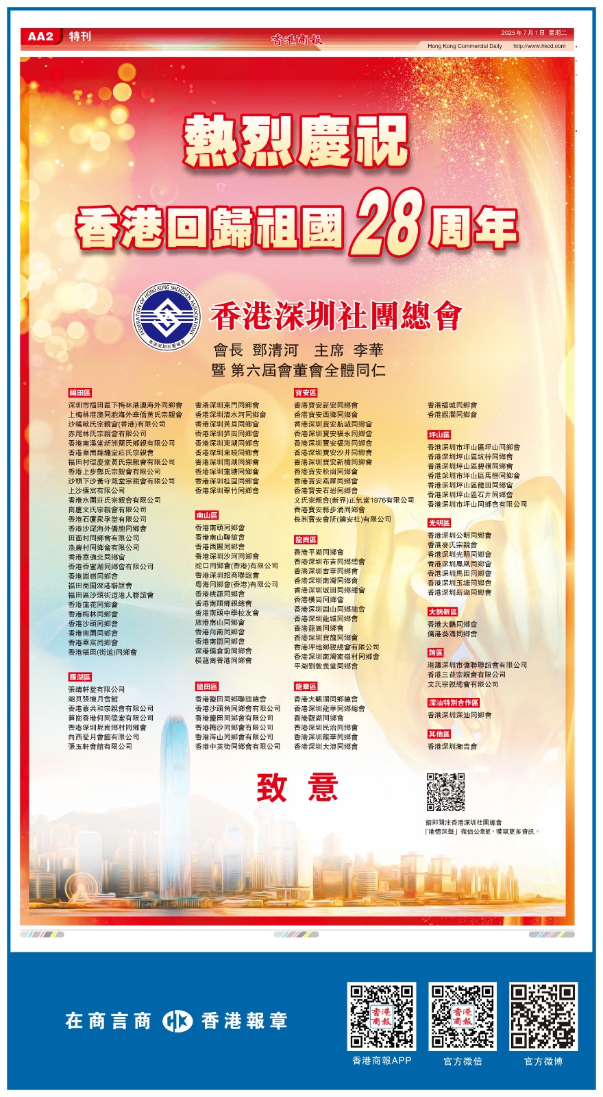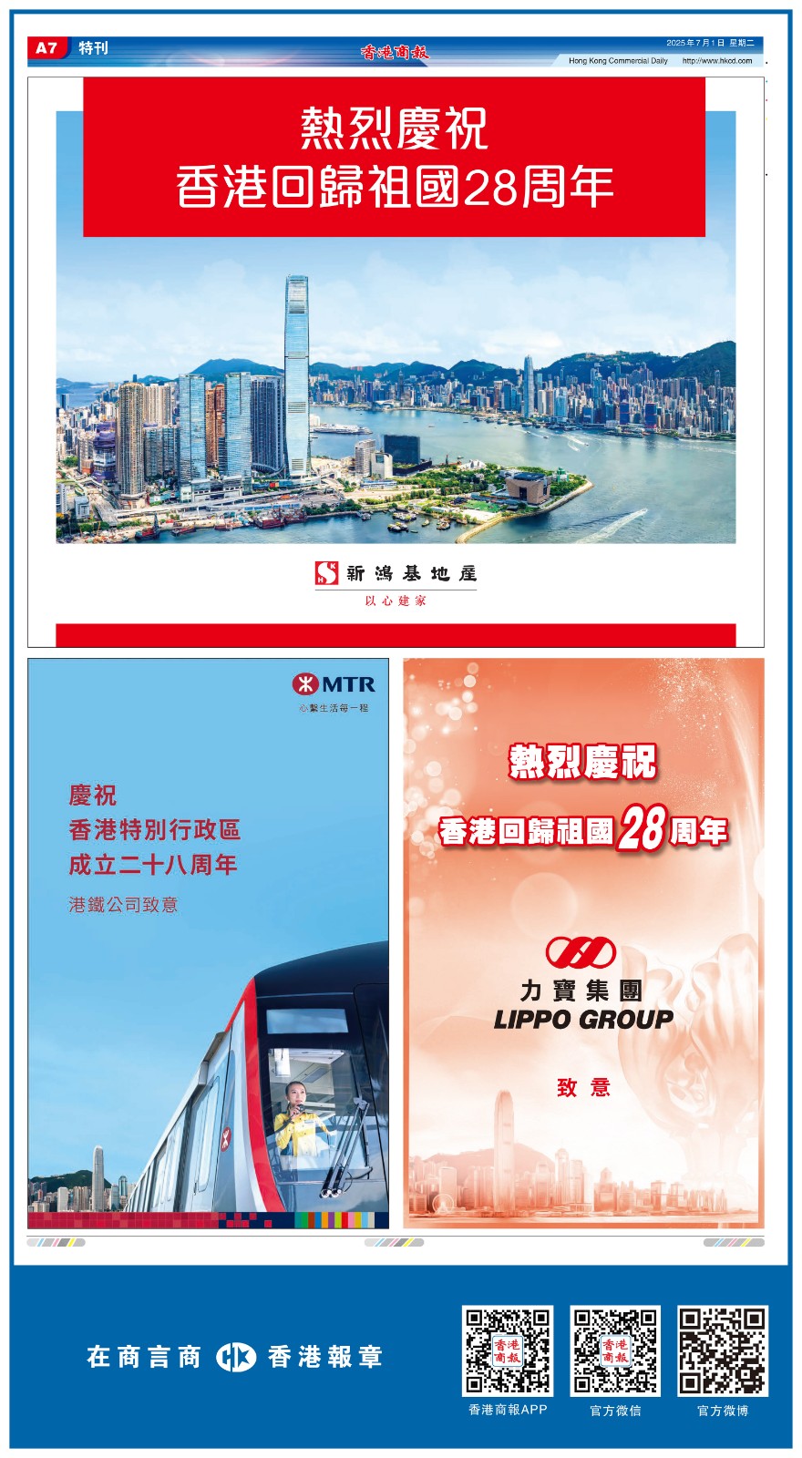 7月1日,祝福香港!一文睇港商精彩版面