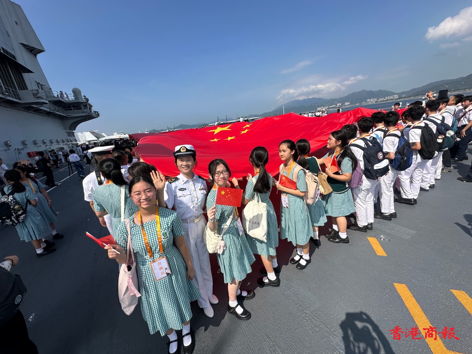 多圖|山東艦快閃活動 官兵與學(xué)生拉開五星紅旗鋪滿甲板