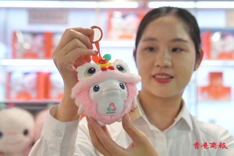 元隆國際控股集團(tuán)有限公司特許業(yè)務(wù)負(fù)責(zé)人迂方明受訪時表示,歡迎各位來到第15屆全運會首間在港開設(shè)的零售店,參觀和挑選心儀產(chǎn)品,他介紹今屆全運會吉祥物「喜洋洋」及「樂融融」,又說很多人問他為甚麼會有粉紅色的海豚,他細(xì)心地向記者解釋,是由於海豚在大海裏游泳,會有運動的時候,隨著年齡漸長,身上膚色逐漸變?yōu)榉奂t色,因此「喜洋洋」及「樂融融」,一隻是白色,另一隻為粉紅色。他又說,香港、澳門和內(nèi)地都是以海相連,組成粵港澳大灣區(qū),故選擇了在海洋生活的動物,作為今屆全運會的吉祥物。