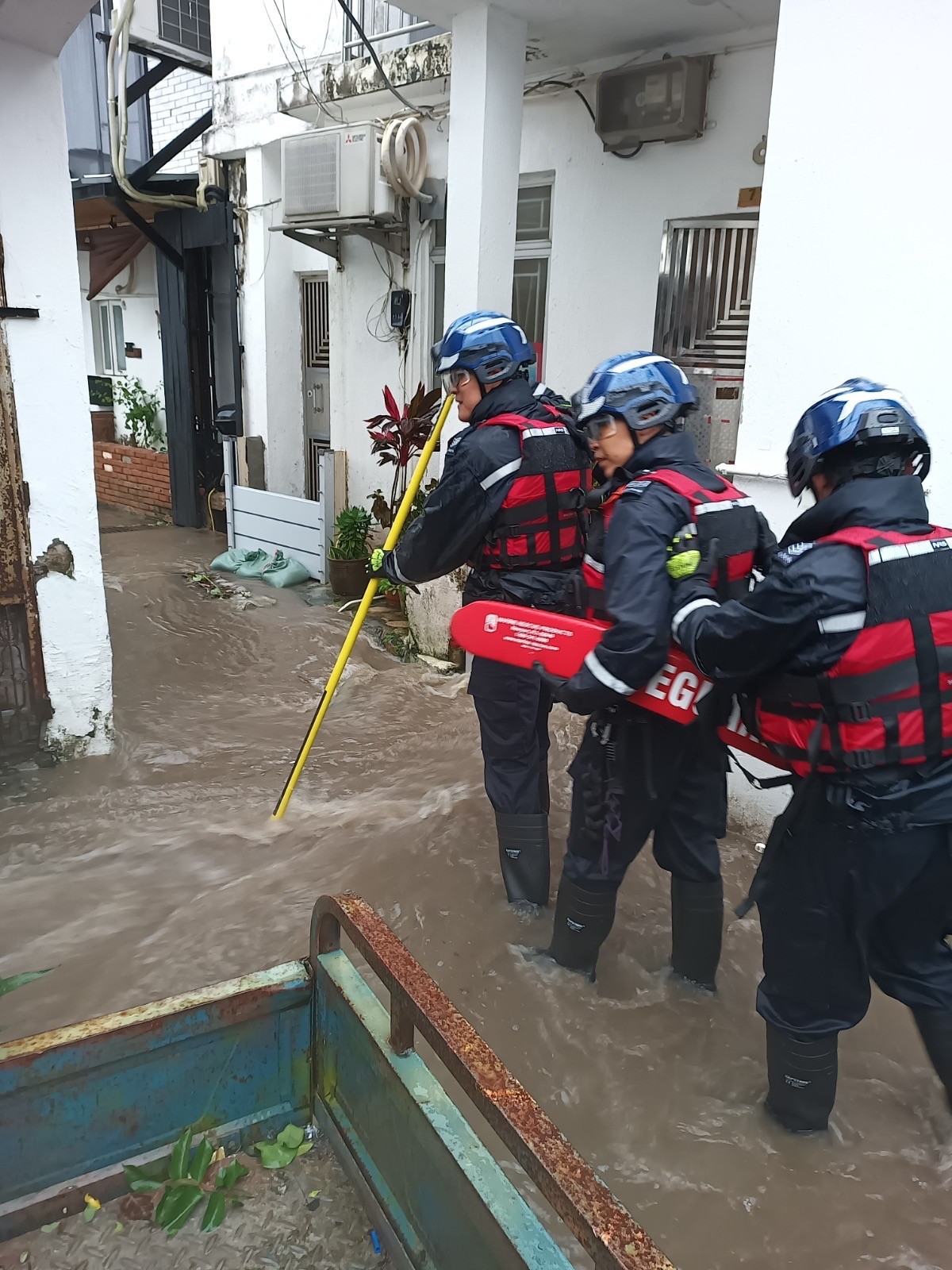 民安隊表示,在颶風(fēng)信號懸掛期間,民安隊派員分別在大澳、鯉魚門、沙頭角及荃灣,處理多宗民居水浸和倒樹事件。隊員們?nèi)σ愿?,協(xié)助居民排水和搶險,確保社區(qū)的安全和穩(wěn)定。