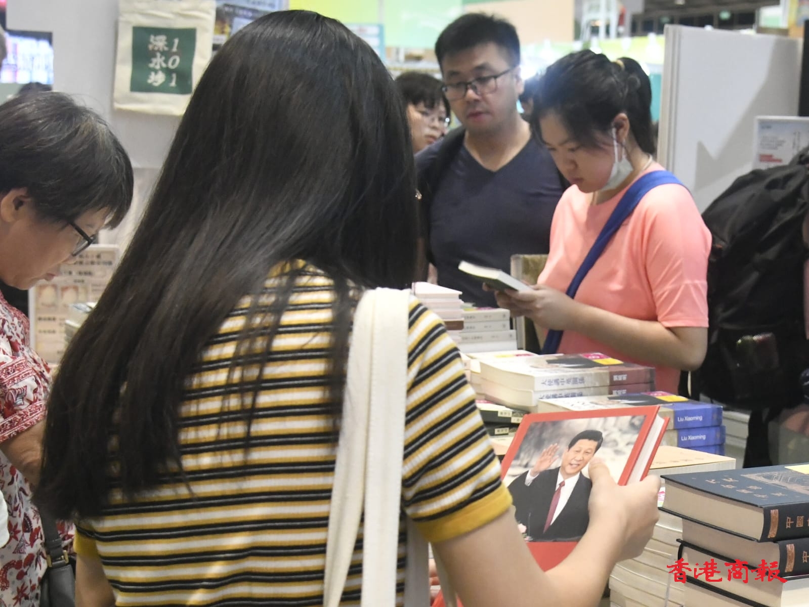 頂圖:有展商反映星期五、六可能因颱風關係人們沒有離開香港而前來書展,氣氛幾好。記者 蔡啟文攝