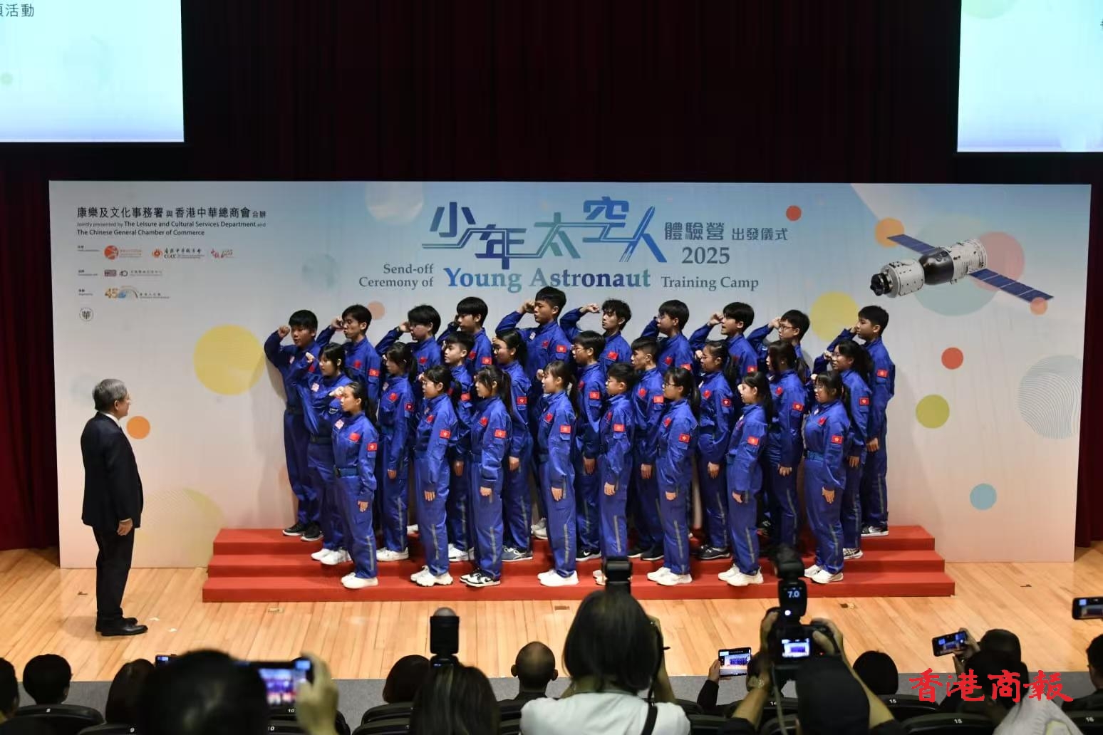 「少年太空人體驗營2025」出發(fā)儀式今午(22日)在尖沙咀科學館舉行,活動邀請政務司副司長卓永興、中聯(lián)辦教育科技部一級巡視員劉懋州、文化體育及旅遊局常任秘書長沈鳳君、康文署署長陳詠雯、身兼「愛國主義教育工作小組」組長的民建聯(lián)立法會議員李慧瓊、香港中華總商會會長蔡冠深等人出席。
