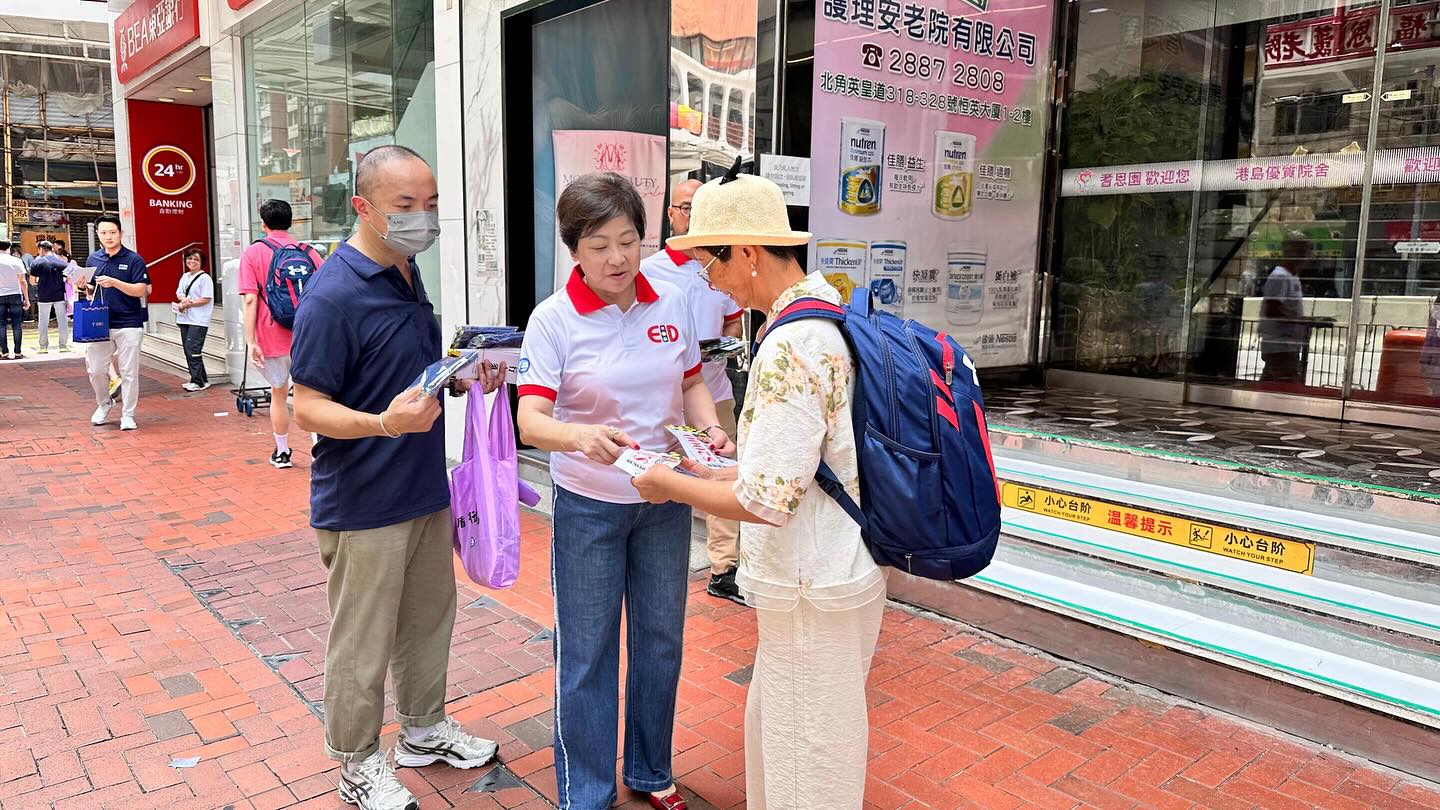 東區(qū)警區(qū)人員昨日(23日)聯(lián)同港島交通部道路安全組、東區(qū)道路安全運(yùn)動(dòng)宣傳委員會(huì)委員,到東區(qū)交通黑點(diǎn)英皇道與長康街交界一帶派發(fā)道路安全宣傳單張及小禮品。