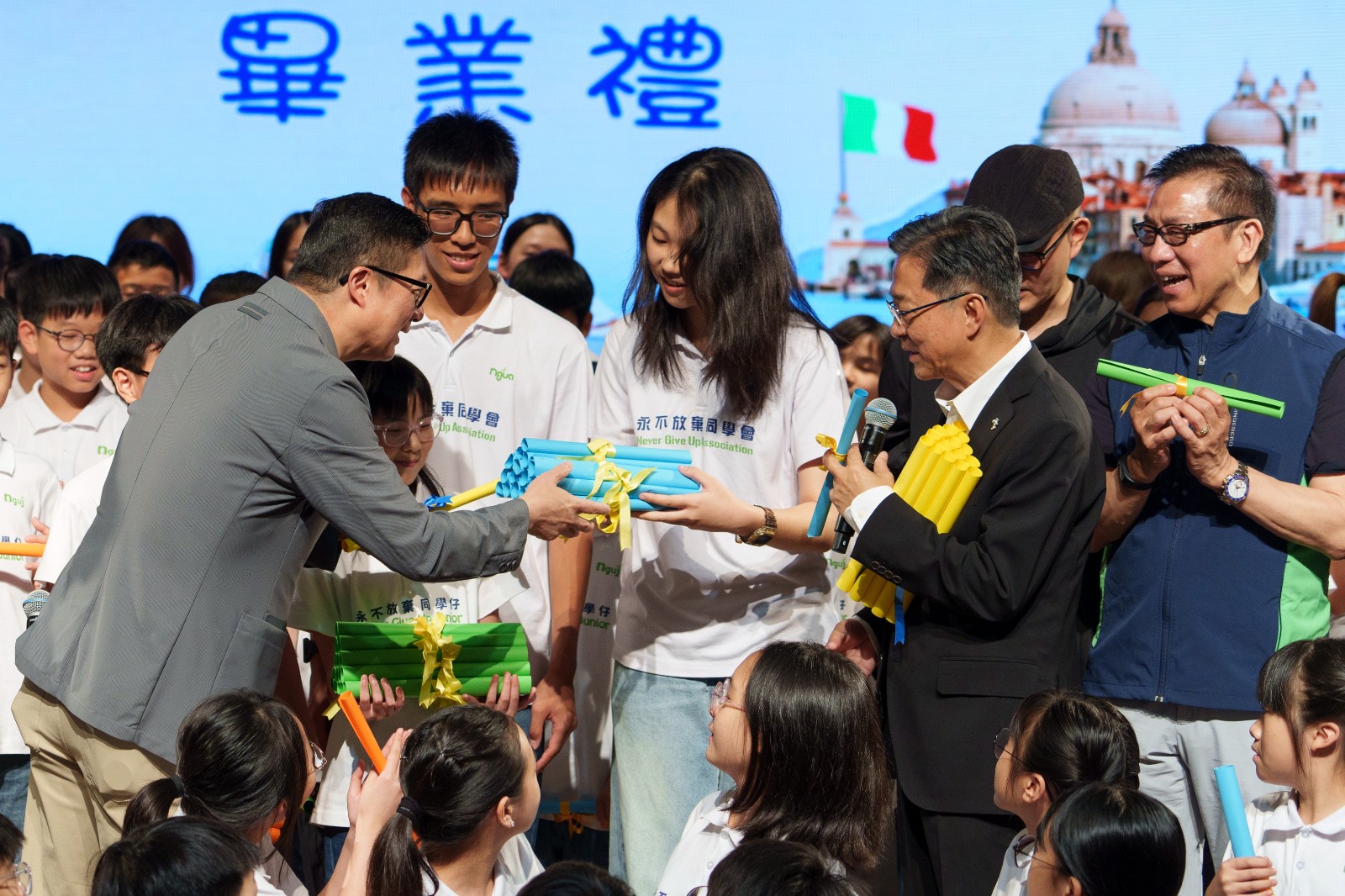 保安局局長(zhǎng)鄧炳強(qiáng)今午(26日)出席「永不放棄同學(xué)會(huì)及永不放棄同學(xué)仔2025畢業(yè)禮」,分享對(duì)家庭、學(xué)業(yè)、事業(yè)、愛情的看法。