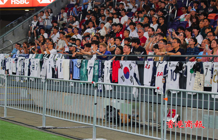 「香港足球盛會(huì)2025」今晚(29日)在啟德主場(chǎng)館舉行熱刺公開訓(xùn)練,當(dāng)中最受球迷歡迎首推韓國(guó)國(guó)腳孫興民,場(chǎng)內(nèi)欄邊掛滿孫興民所穿的7號(hào)球衣,除本地球迷外,現(xiàn)場(chǎng)還有韓國(guó)球迷前來支持,可謂備受愛戴。