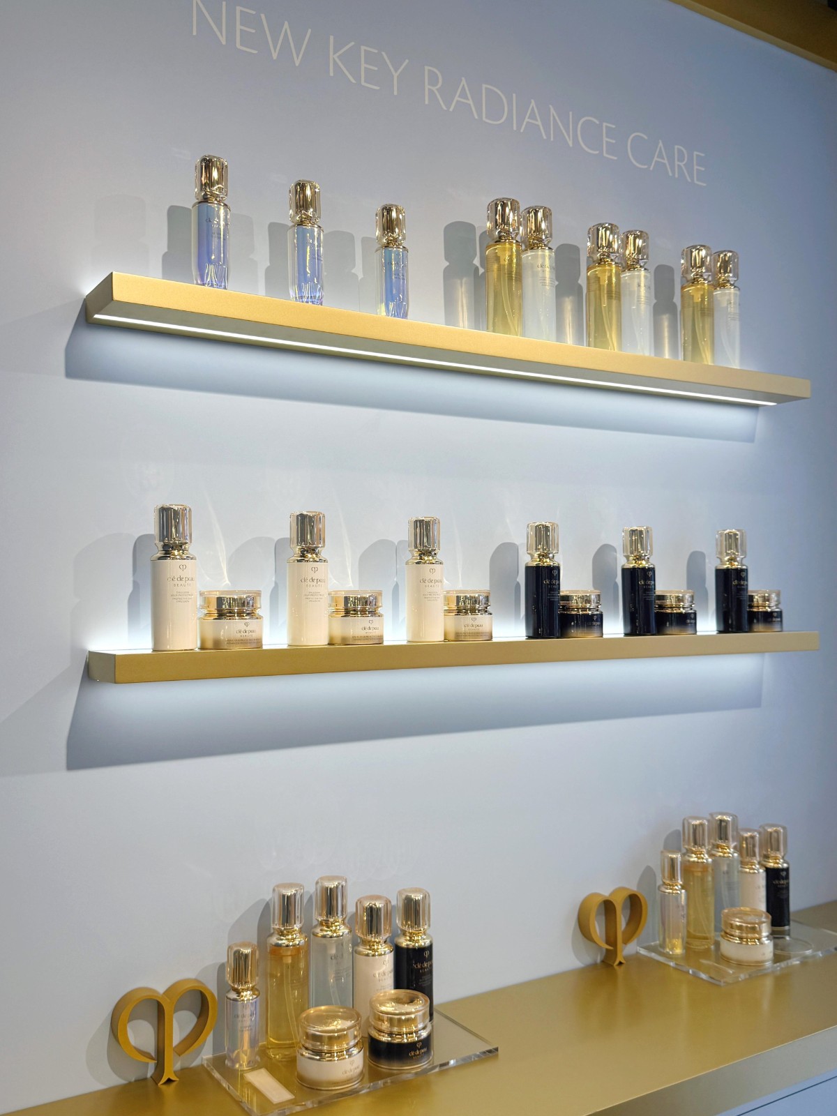 限定店由護(hù)膚品牌Clé de Peau Beauté開設(shè),品牌繼去年推出加入了鑽光百合精華的THE SERUM煥活細(xì)胞精華,今季將此成分萃取傾注於鉑鑽源亮細(xì)胞系列,以「喚醒、滋養(yǎng)、緊致」三重護(hù)養(yǎng)儀式,日禦夜養(yǎng)。限定店以精華的眩金鑽光瓶身色調(diào)為主色,並將鑽光百合萃取技術(shù)化為流線形藝術(shù)裝置,於嚴(yán)謹(jǐn)科研氛圍中透顯細(xì)膩的奢華美學(xué)。