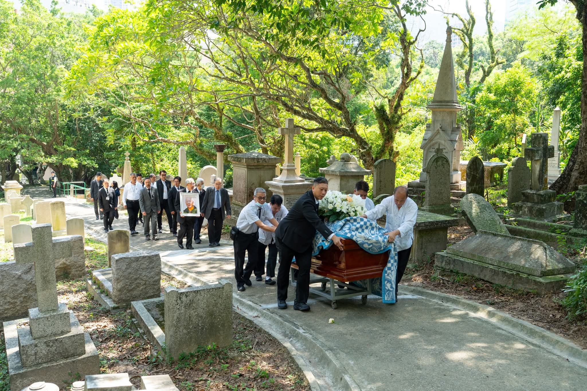 胡鴻烈今早(27日)辭靈出殯,與已故妻子、樹仁大學(xué)創(chuàng)校校長鍾期榮合葬跑馬地香港墳場。多位政界及教育界人士為胡鴻烈扶靈,包括仁大校董會主席丁午壽、葉劉淑儀、前律政司司長梁愛詩、前律政司司長黃仁龍、前香港中文大學(xué)校長金耀基及浙江樹人學(xué)院李魯校長。