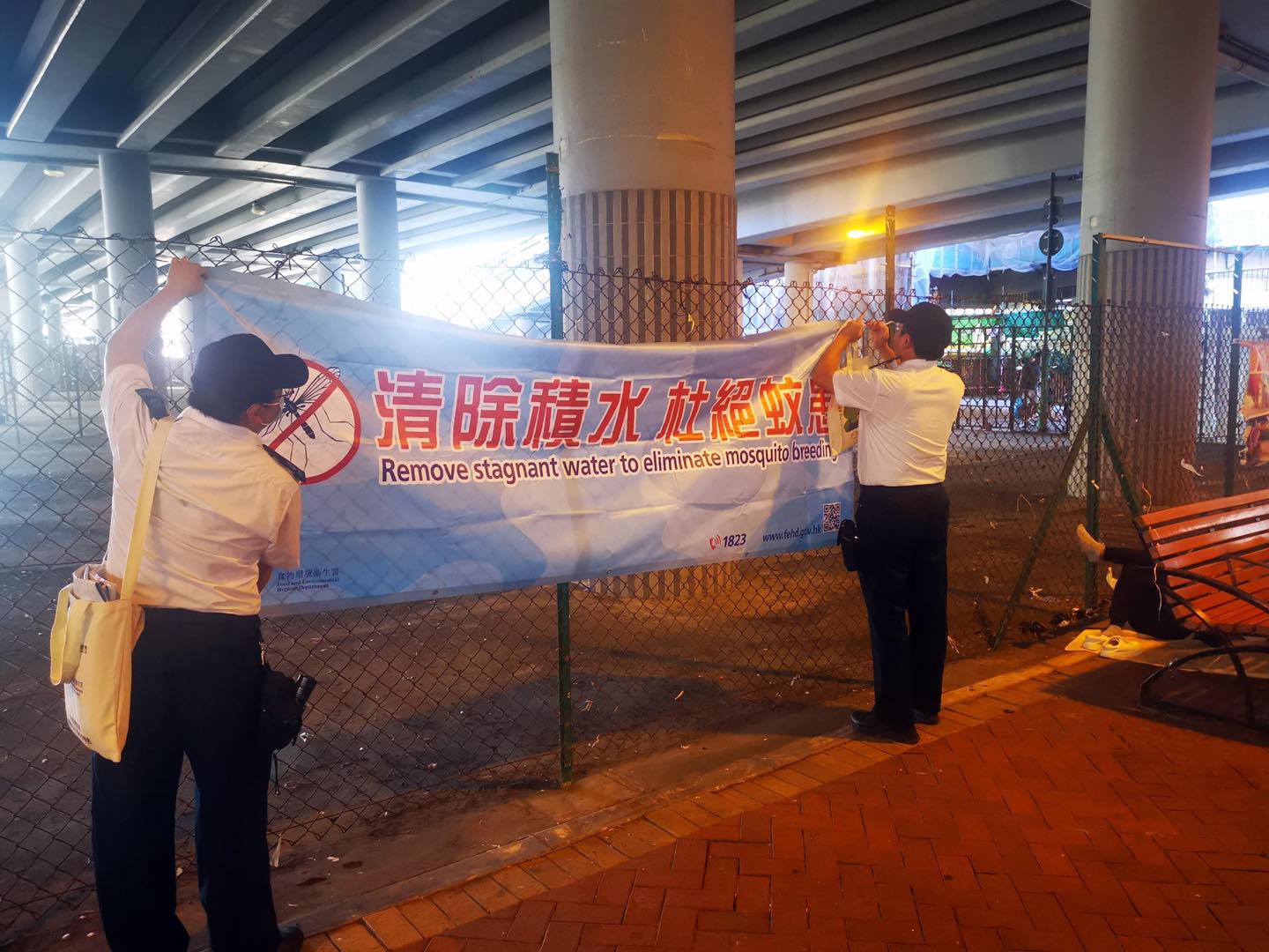 深水埗民政處亦積極跟進事件,昨日深水埗民政專員王浩宇、深水埗區(qū)衛(wèi)生總督察周振賢聯(lián)同美孚聯(lián)合小區(qū)關愛隊成員、郭彥麗區(qū)議員、美孚新邨物管公司代表、荔枝角公園職員及多位政府部門代表展開聯(lián)合行動,於美孚港鐵站外、萬事達廣場橋底空間及荔灣街市進行跨部門宣傳工作,向居民及外籍家庭傭工派發(fā)防蚊宣傳資訊及防蚊用品。其後到邨內(nèi)各位置視察環(huán)境,居民均感謝各部門及關愛隊迅速行動。(記者區(qū)天海)