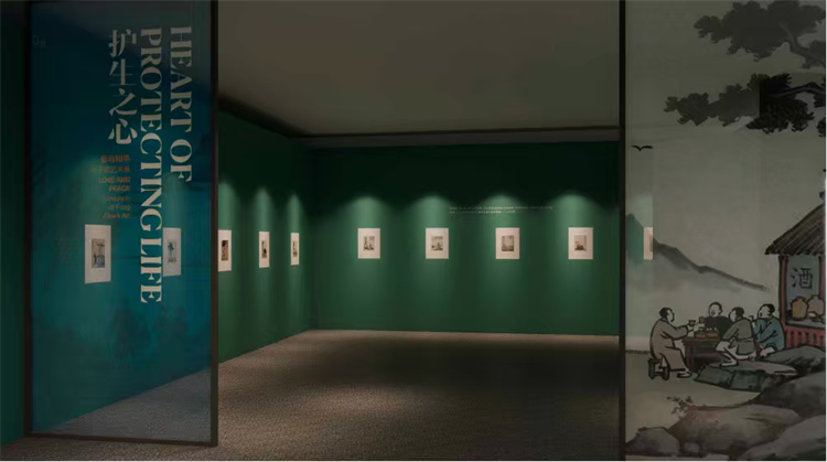 展覽第一板塊「家國之情」,展出豐子愷先生以抗日戰(zhàn)爭為題材的漫畫,展現(xiàn)先生以筆為槍、心繫家國的深沉情懷。展覽第二板塊「詩意之韻」,以詩入畫、融畫於詩,勾勒出豐子愷先生作品中西融合、靈動雋永的詩意境界。展覽第三板塊「童真之趣」,聚焦兒童題材,頌揚純真、批判世俗,體現(xiàn)豐子愷先生赤子之心與藝術(shù)追求的統(tǒng)一。展覽第四板塊「護生之心」,傳遞豐子愷先生慈悲護生、宣導(dǎo)和平的精神理念。