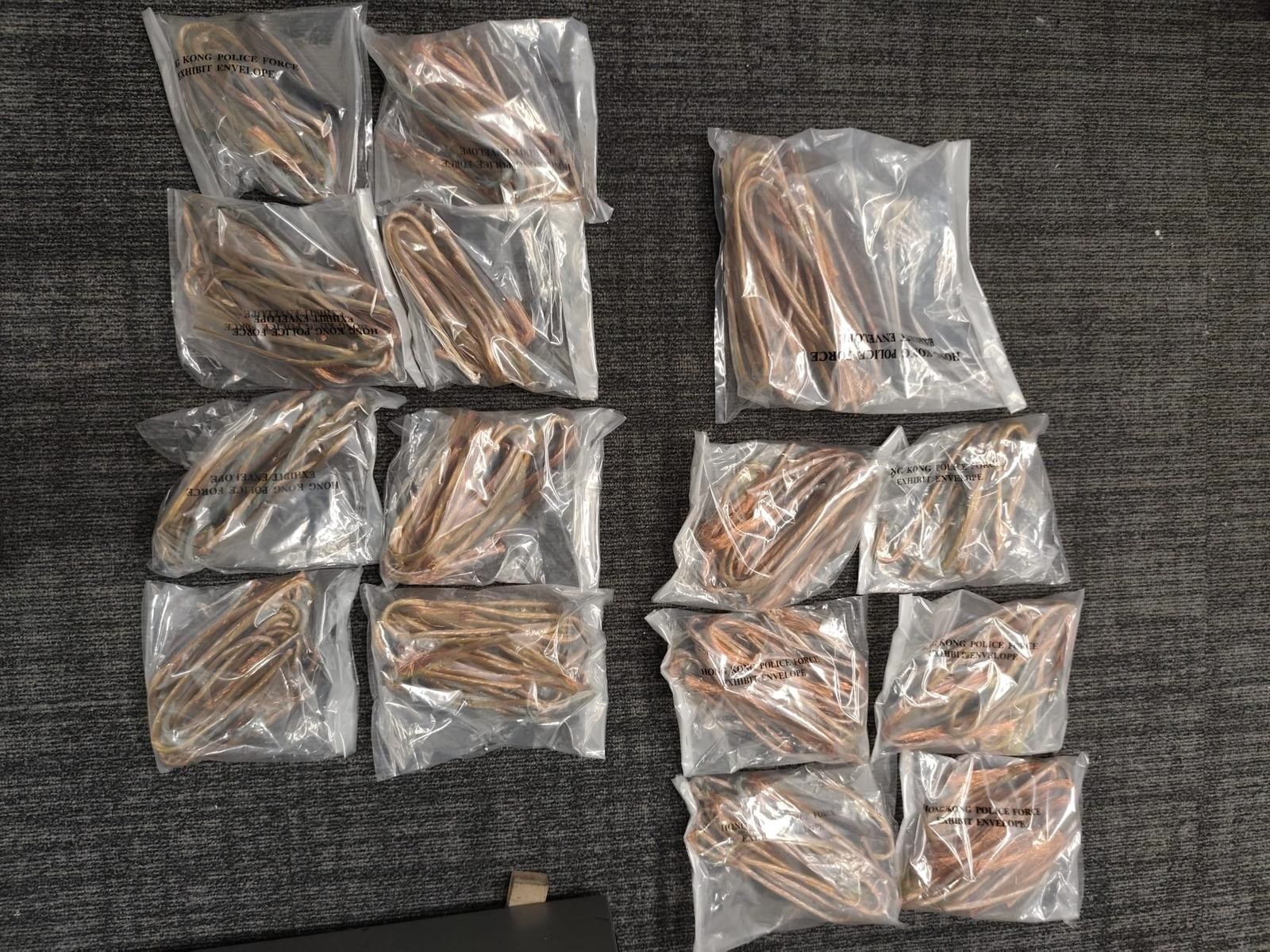 警方東九龍總區(qū)衝鋒隊昨日(15日)在九龍灣宏照道一帶巡邏期間,於一地盤外發(fā)現(xiàn)一名背著背包、手拉車及手持一個環(huán)保袋的女子,形跡可疑遂上前截查。人員在該名女子的環(huán)保袋及手拉車內(nèi)發(fā)現(xiàn)15捆銅電線及101個銅喉,檢獲物品總值約3000元。
