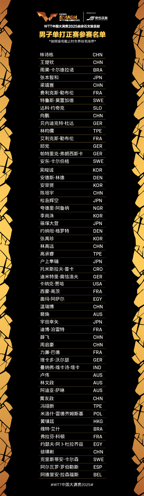 責(zé)任編輯:王錦坤 9月28日開打!WTT中國大滿貫2025正賽名單公布↓
