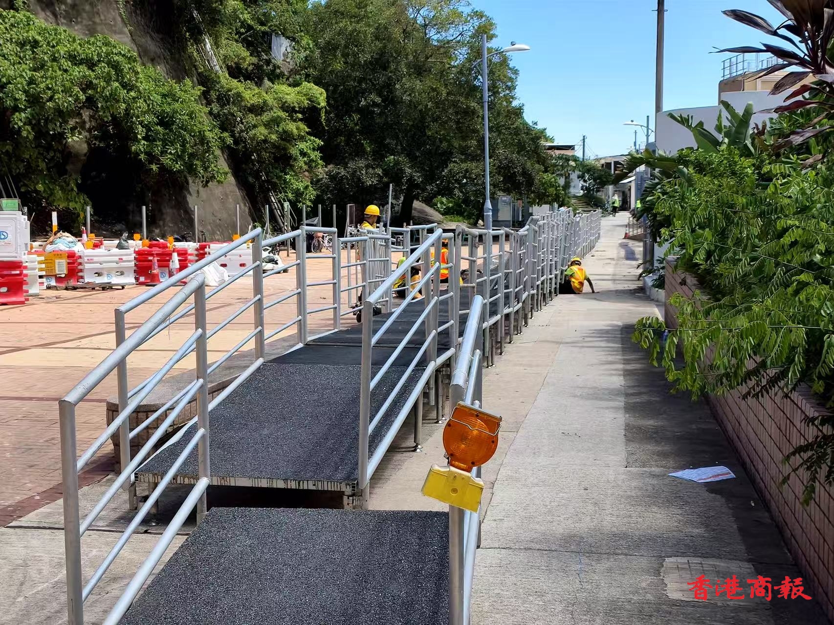 現(xiàn)場(chǎng)建設(shè)橋樑供居民水浸時(shí)橫過(guò)。記者 馮瀚文攝