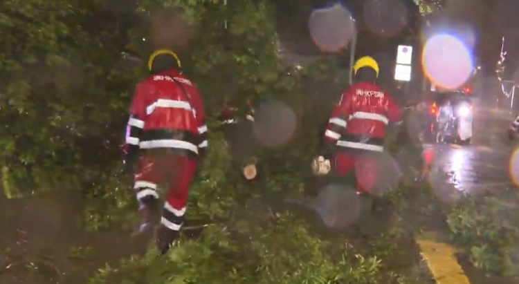 截至早上9時,政府1823電話中心、消防處和康樂及文化事務署分別收到55宗、157宗和1宗塌樹報告。凌晨約4時,尖沙咀柯士甸道與漆咸道南交界行人路旁一棵逾5米高的大樹連根拔起,橫亙路中,消防員接報到場,用電鋸將樹幹切割並移離,花約半小時處理完。而在黃大仙橫頭磡東道橫頭磡邨對開,有大樹在強風吹襲下倒塌,樹枝橫臥在路旁,樹幹壓中一輛的士,無人受傷。