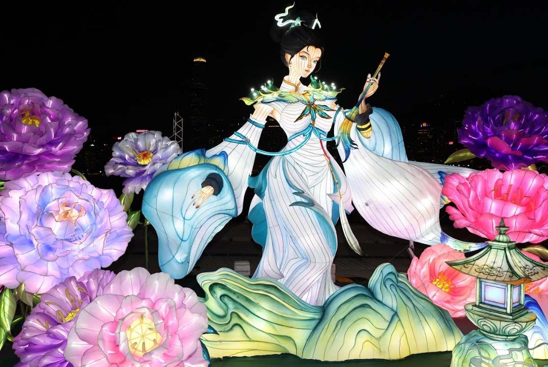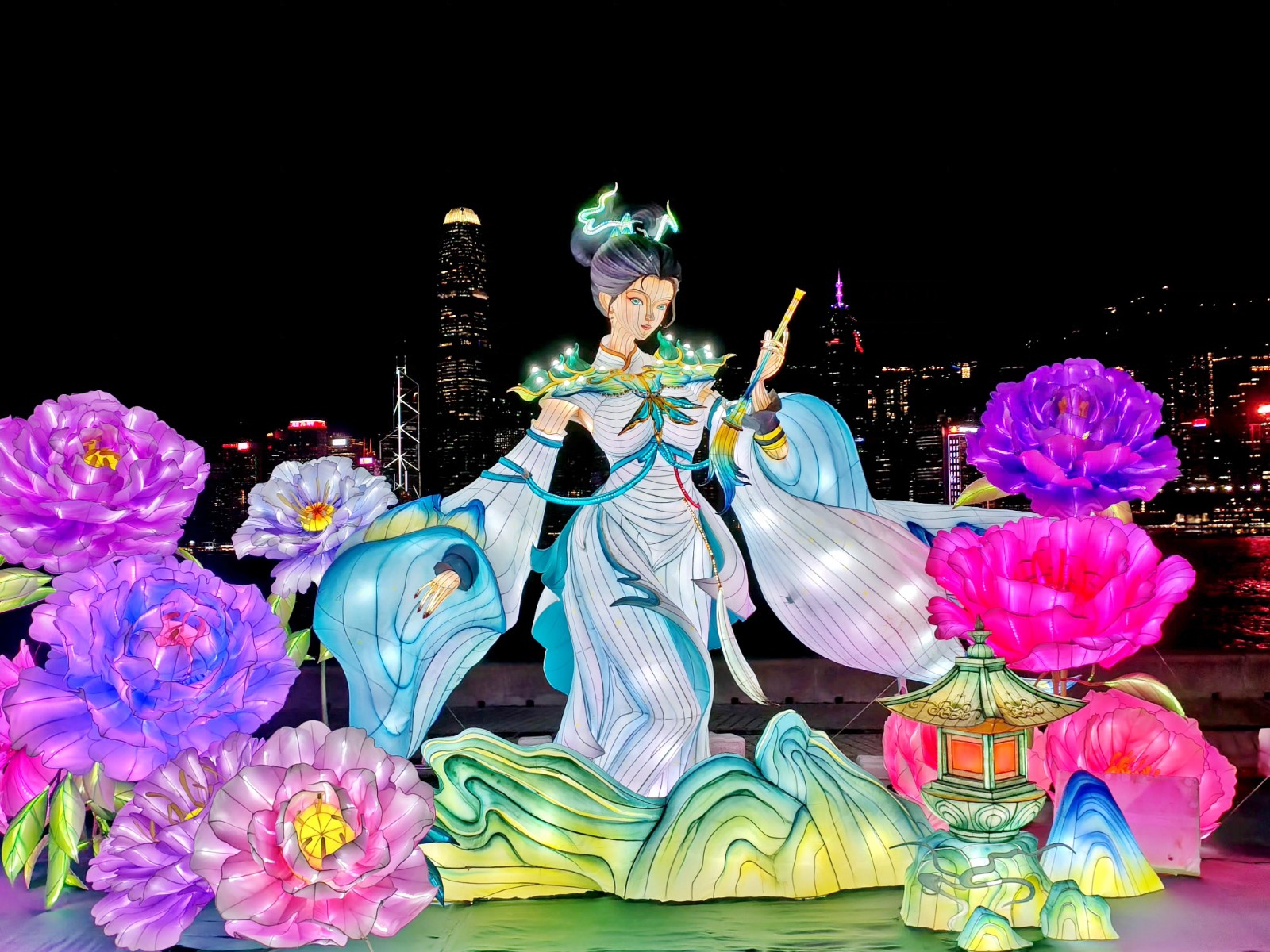 本次嘉年華以華服為媒、花燈為韻,創(chuàng)新推出「白天遊園+夜間賞燈」的全時段體驗?zāi)J?。在開幕儀式上亮燈的「香江仙子」巨型花燈燈組,由四個大型花燈組成,主燈「紫霞仙子」高12.8米,運用國家級非遺自貢花燈技藝,結(jié)合華服等中國傳統(tǒng)文化元素,融合現(xiàn)代光影技術(shù),沿維港岸線陳列,形成獨具特色的燈光景觀。