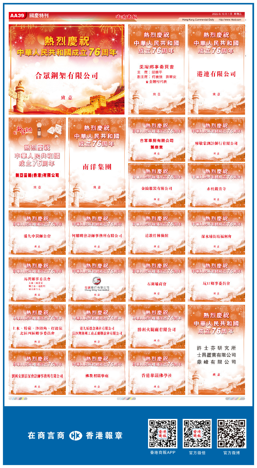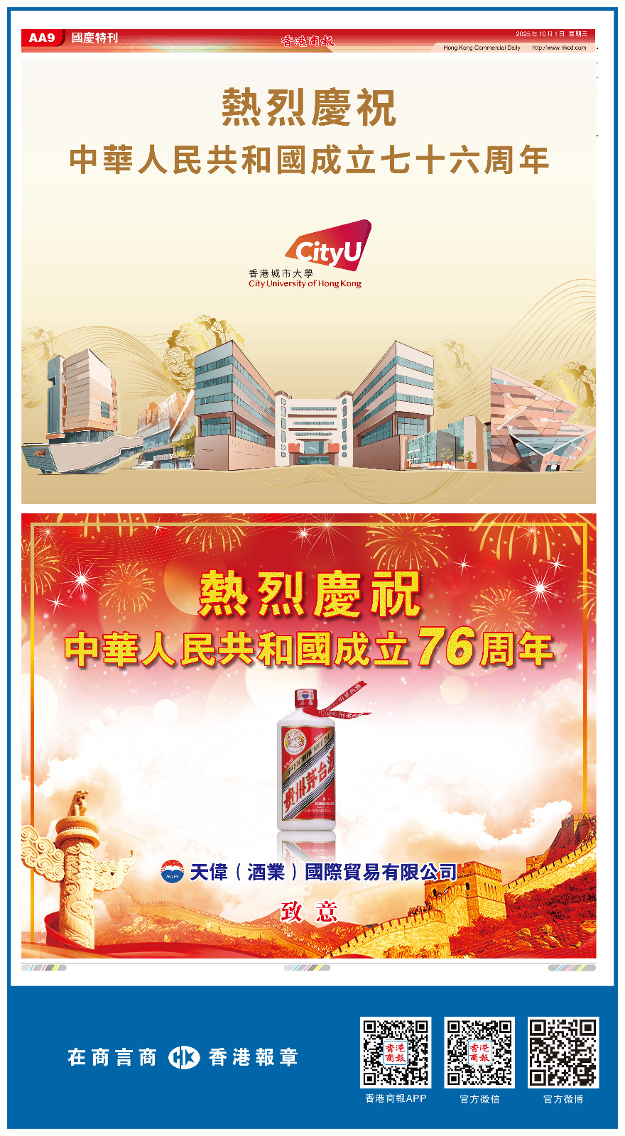 責(zé)任編輯:黃鶯 賀國(guó)慶76周年 香港商報(bào)精彩版面來(lái)了!