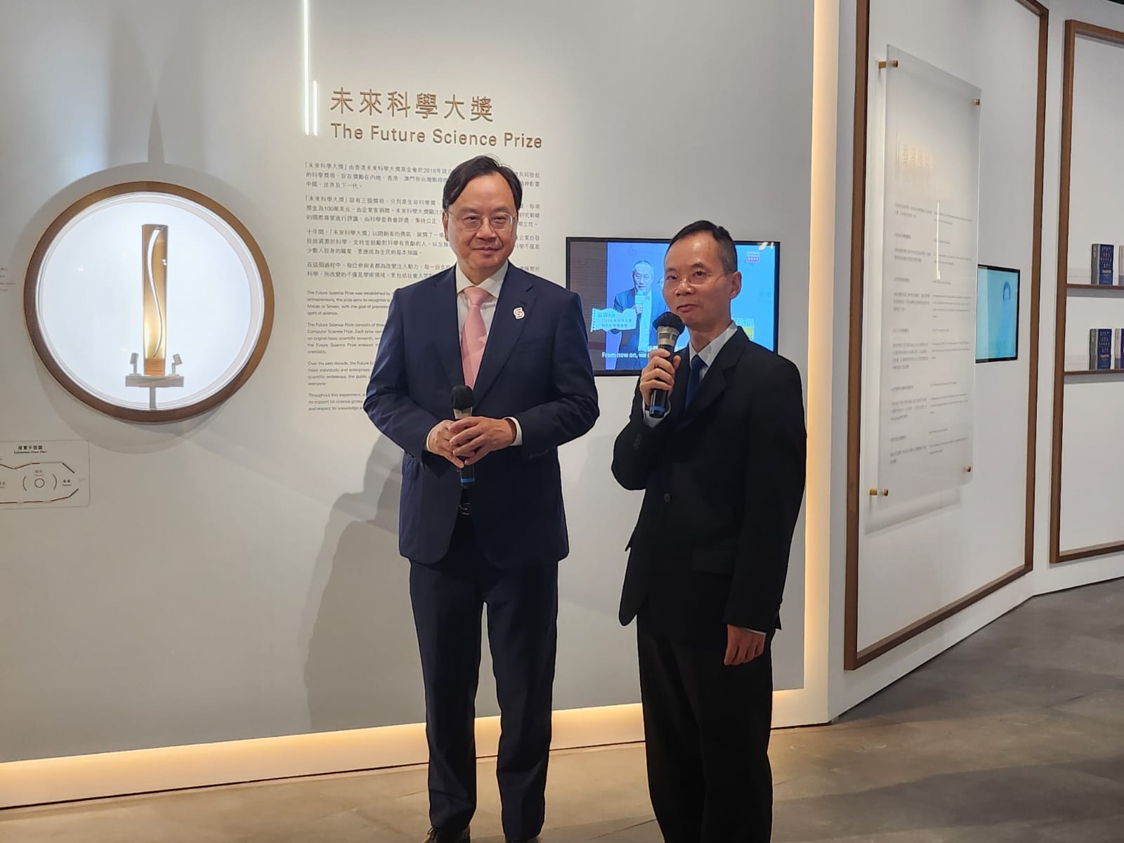 今次展覽也首度展出未來科學(xué)大獎獎座。作為首屆生命科學(xué)獎得主的盧煜明教授笑言,自己其實有兩個大獎獎座,因為未來科學(xué)大獎更新獎座設(shè)計後,他再獲贈新版的獎座。