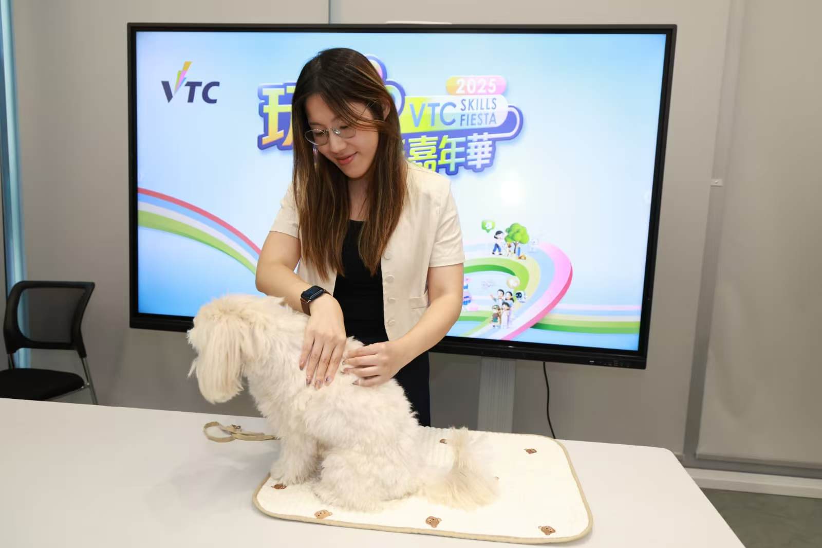 VTC「玩轉(zhuǎn)技能」嘉年華亦設(shè)有不同的體驗(yàn)活動(dòng),家中飼養(yǎng)狗狗的參加者不要錯(cuò)過(guò)其中寵物放鬆按摩示範(fàn),香港專業(yè)教育學(xué)院(IVE)柴灣院校健康及生命科學(xué)系講師章臻彤(Sherry)稱,活動(dòng)示範(fàn)分享寵物按摩技巧,以柔和的手法對(duì)穴位施加壓力,促進(jìn)狗狗的血液循環(huán),讓他們徹底放鬆、舒緩壓力與關(guān)節(jié)疼痛。